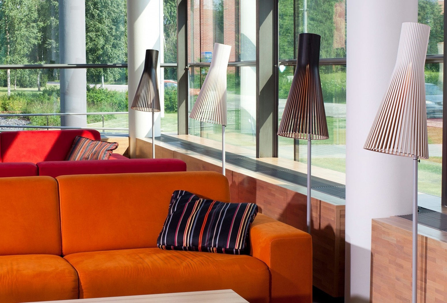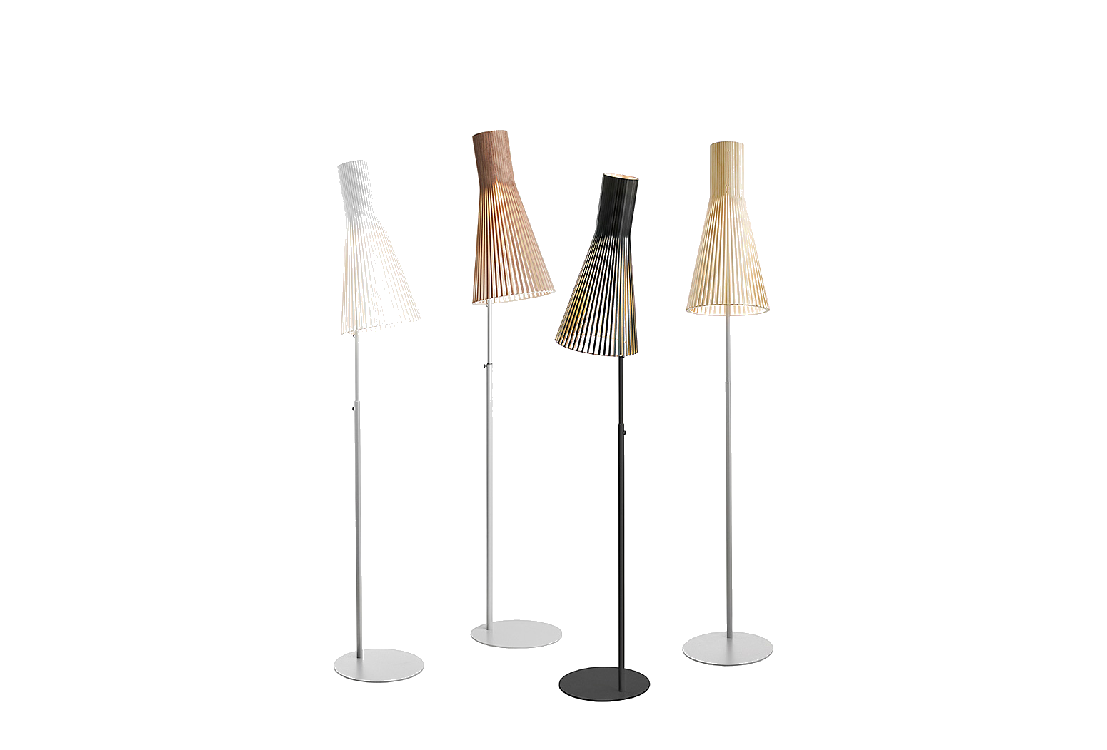 Kolekce designových lam Secto je navržena finským interiérovým architektem Seppo Koho. Stínítka jsou vyrobeny z vrstvených březových lamel spojených balzovým kroužkem.