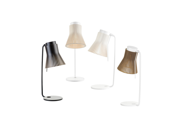 Stolní lampa Petite je velmi vhodná pro kancelářský stůl, velmi dobře usměrňuje světlo. Rozjasní také každý noční stolek. Kolekce designových lam Secto je navržena finským interiérovým architektem Seppo Koho. Stínítka jsou vyrobeny z vrstvených březových lamel spojených balzovým kroužkem. Stínítka jsou dostupné v bříze přírodní, bílé nebo černé vrstvené bříze. Stínítka jsou ručně vyrobeny velice zručnými finskými řemeslníky.