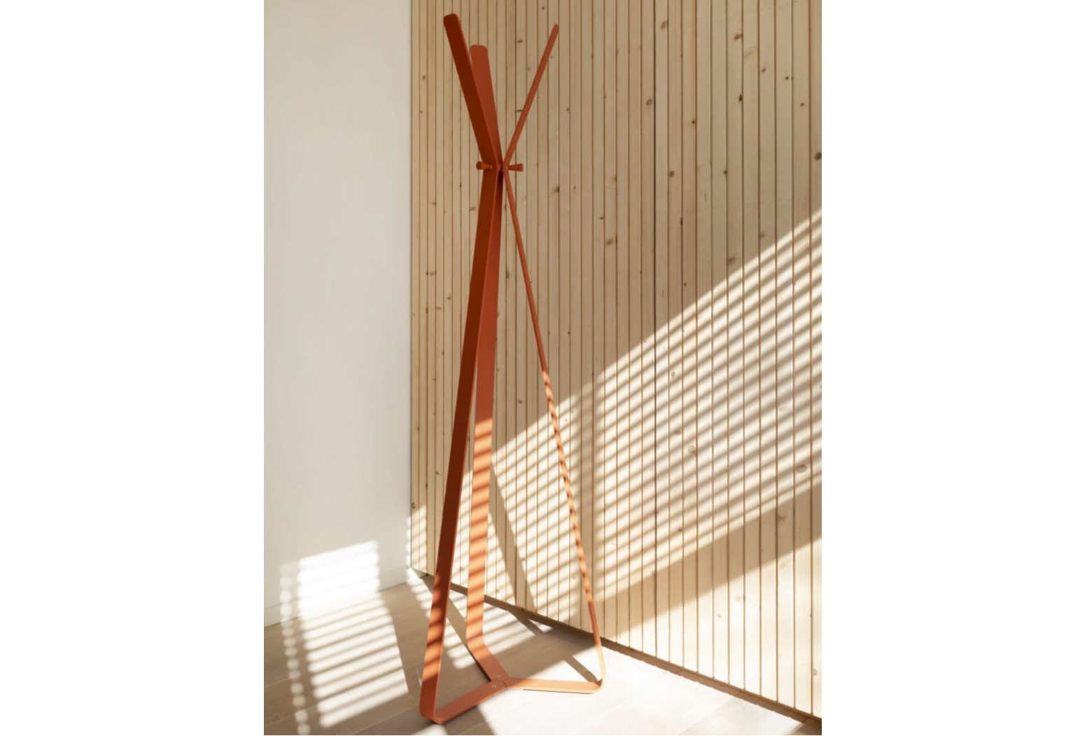 Bend se skládá z ohýbaných kovových sloupků, které jsou propojeny atraktivním způsobem. Kabáty mohou být zavěšeny na pečlivě zaoblené konce proužků nebo na práškových nohách, které spojují sloupky.