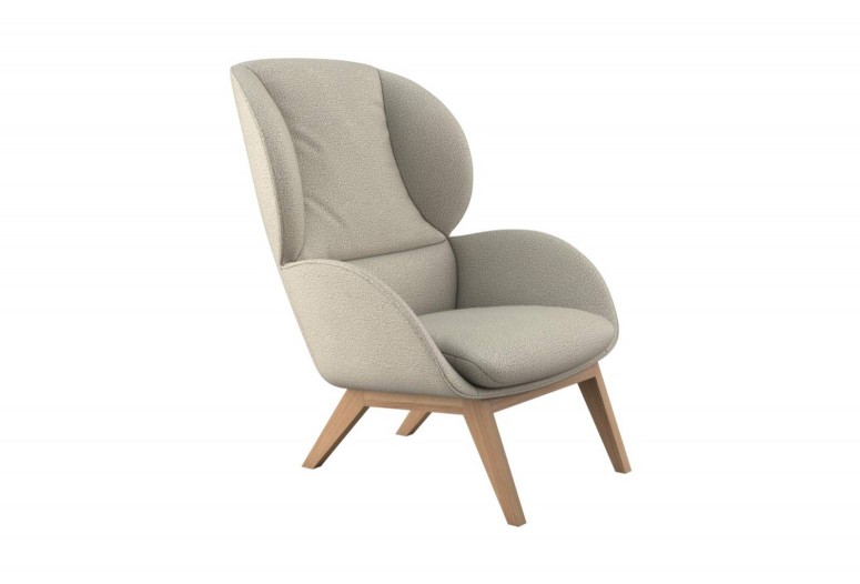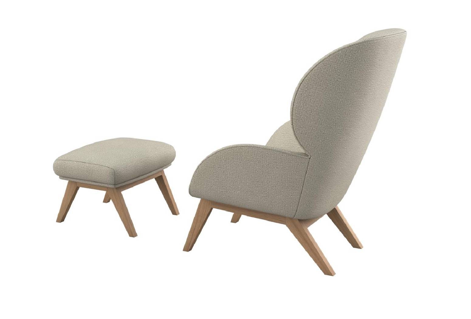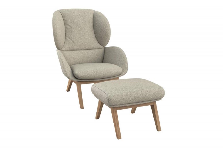 Adria velmi jednoduché a elegantní křeslo Je stylové, přesto velmi pohodlné. Vzorek z prodejny, k dispozici ihned. Látka Amalfi Beige, nohy dub olejovaný. Bez taburetu.