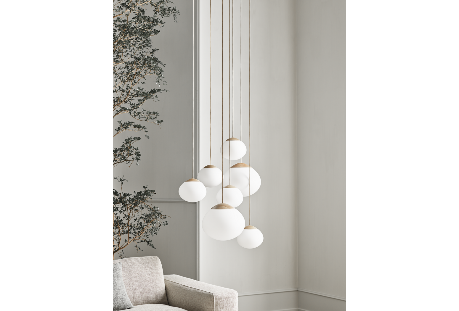 Závěsná svítidla a stolní lampy Acorn mají přitažlivou organickou siluetu inspirovanou charakteristickým tvarem žaludu.