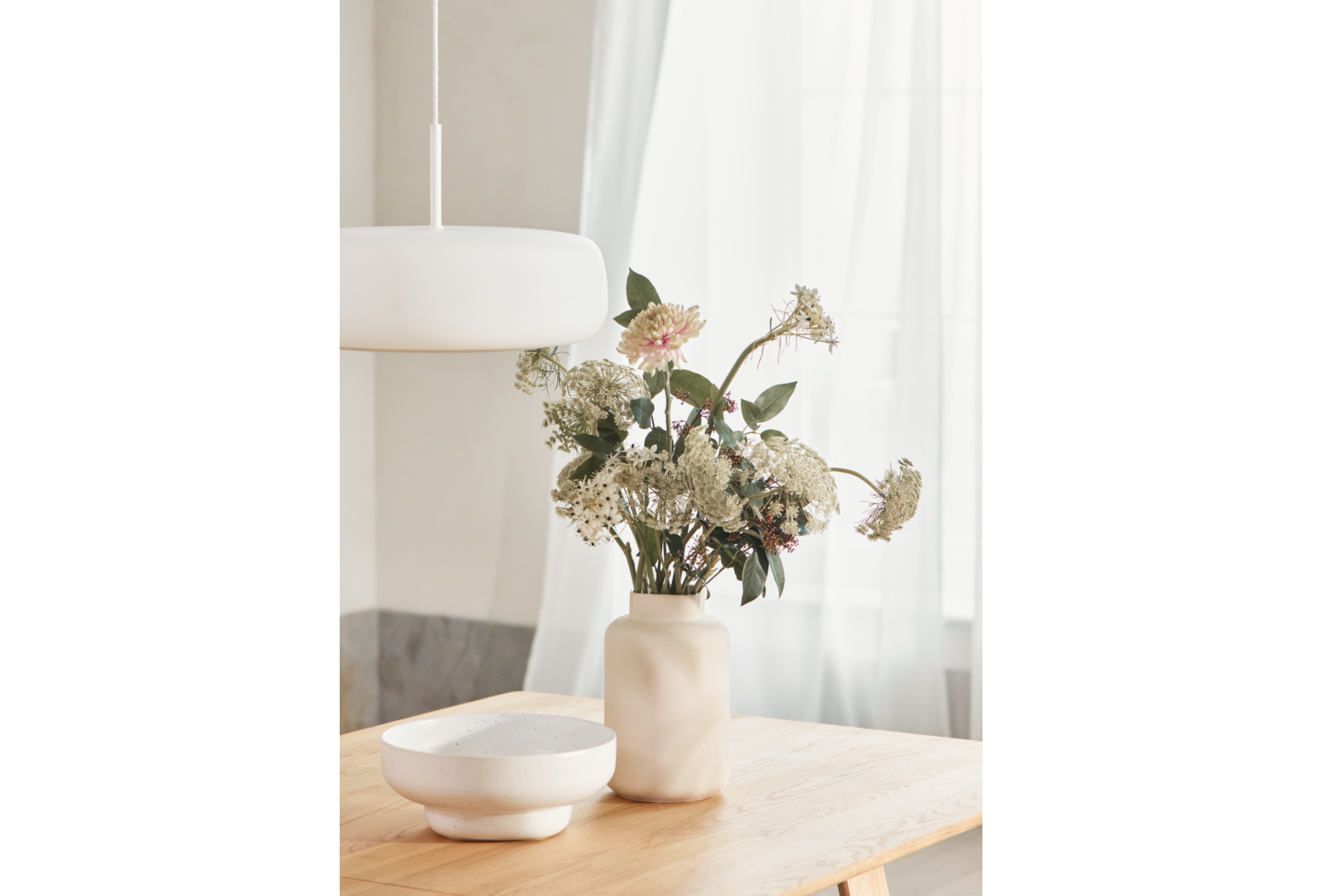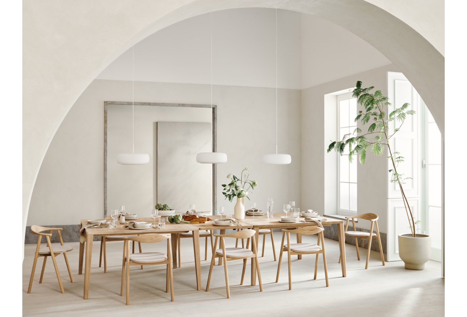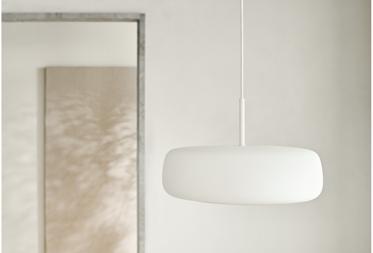 Lampy Fluire navrhl Oliver Schick a mají výrazný a tajemný výraz. Středový světelný zdroj směřuje dolů, ale také prosvítá vnější skleněnou vrstvou, aby vytvořil zajímavý vrstvený efekt a odstupňování jasu, průhlednosti a barev.