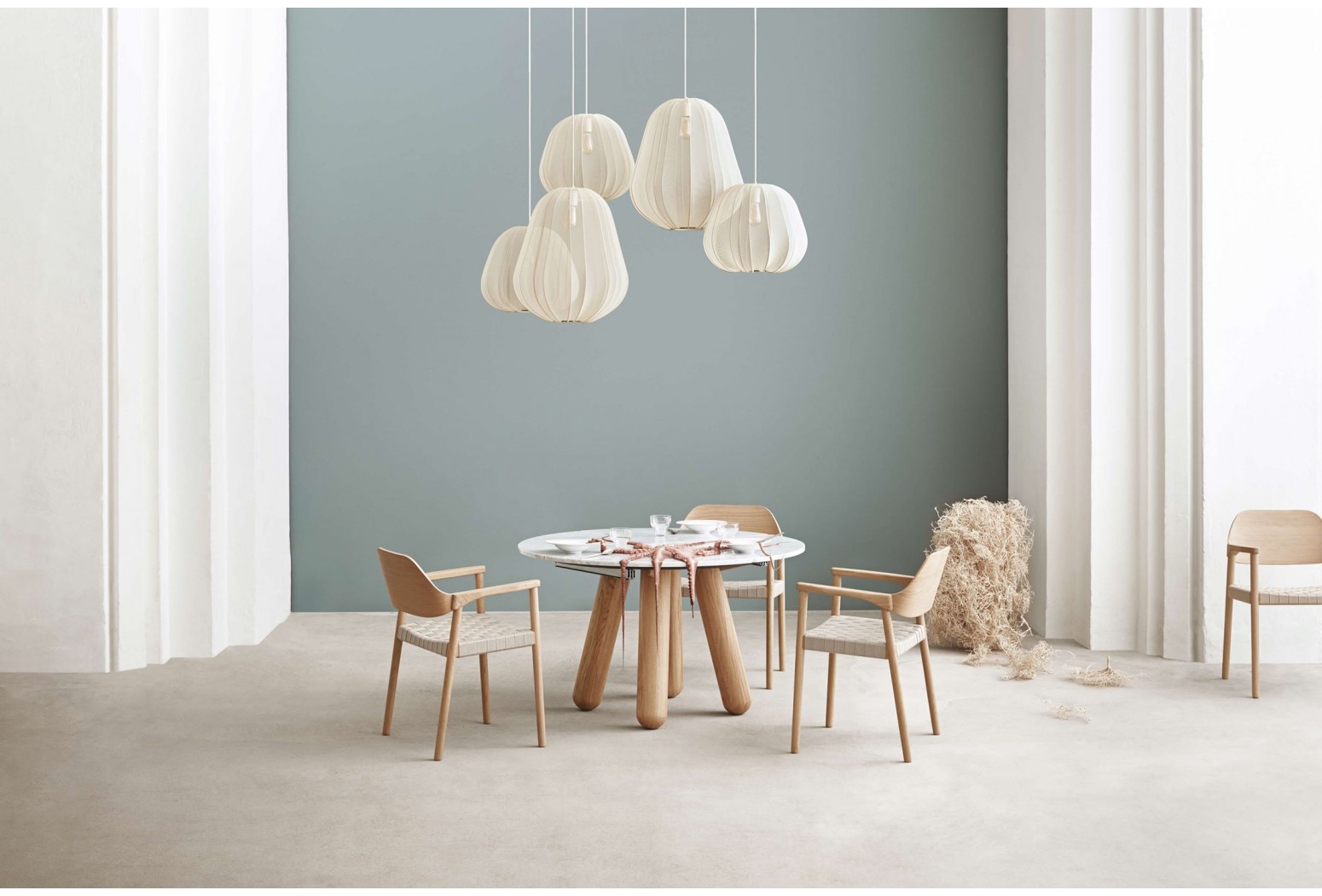 Elegantní a čistá síťovaná látka dodává lampě Ballon lehký a hravý efekt a odráží světlo téměř hypnotickým způsobem.
