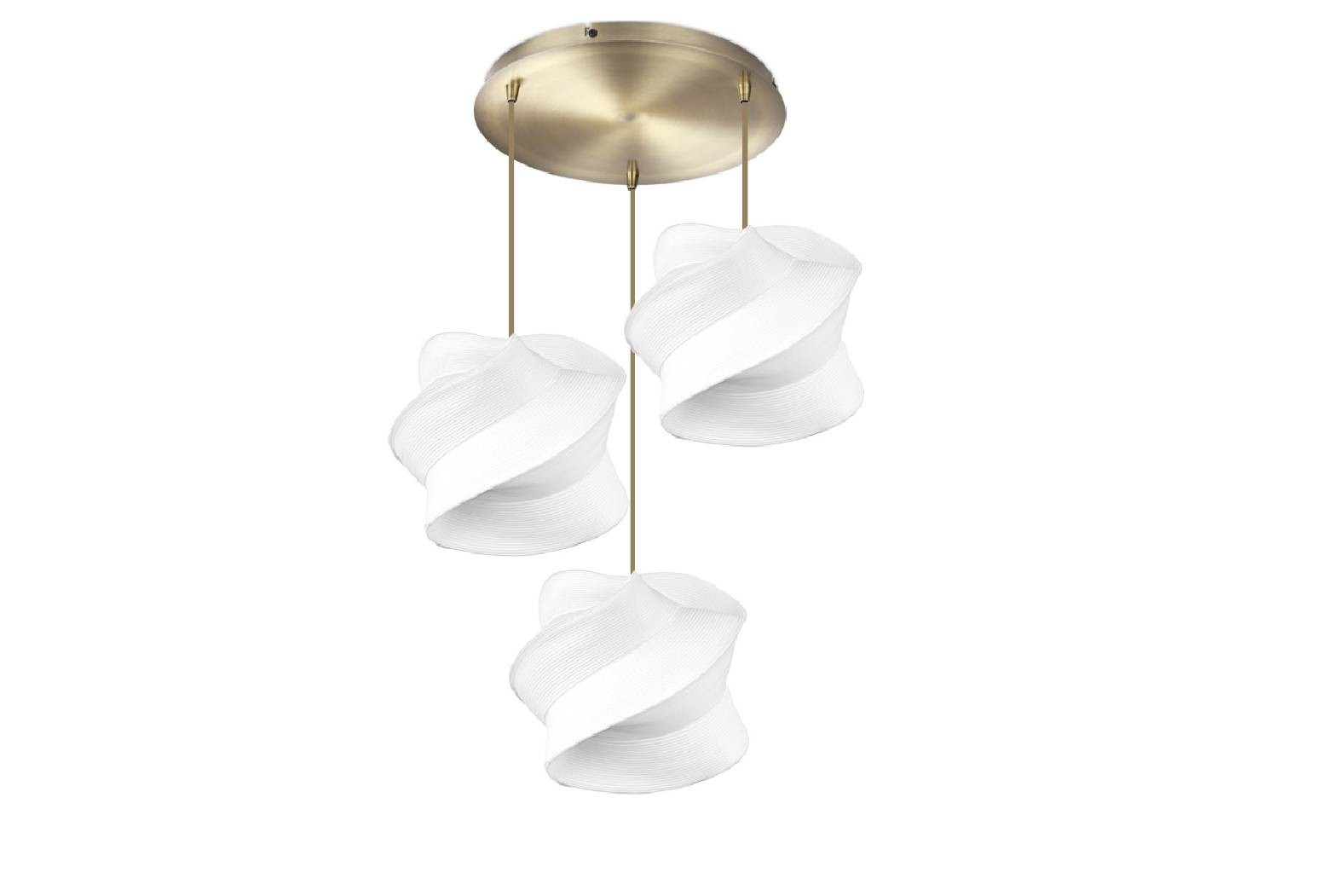 Textilní závěsný lustr ZIPPOO 3 stínítka průměr 23 cm vyrobená ze speciálního bílého nekonečného zipu, ručně tvarovaného do elegantního, organického tvaru. Svítidlo vytváří měkké, příjemné světlo, které neoslňuje a dodá vašemu interiéru útulnou atmosféru.