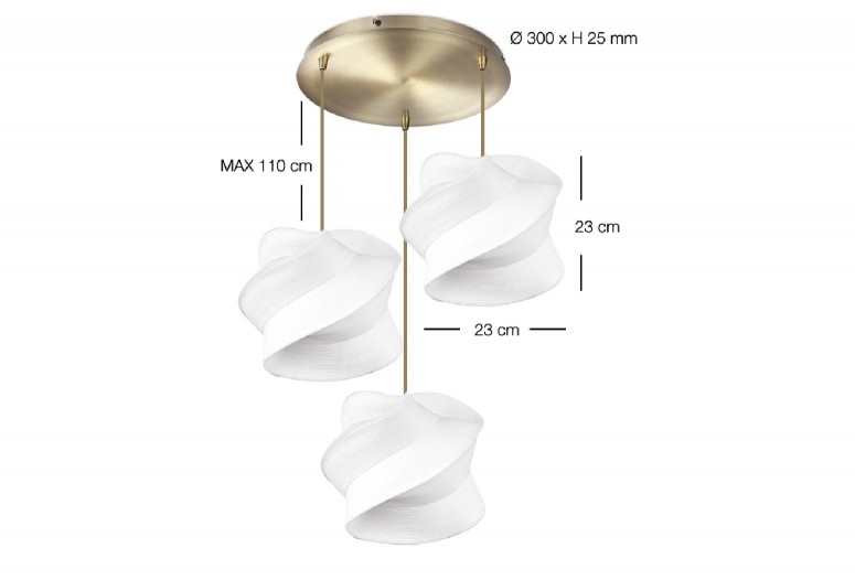 Textilní závěsný lustr ZIPPOO 3 stínítka průměr 23 cm je vyrobená ze speciálního bílého nekonečného zipu, ručně tvarovaného do elegantního, organického tvaru. Svítidlo vytváří měkké, příjemné světlo, které neoslňuje a dodá vašemu interiéru útulnou atmosféru.