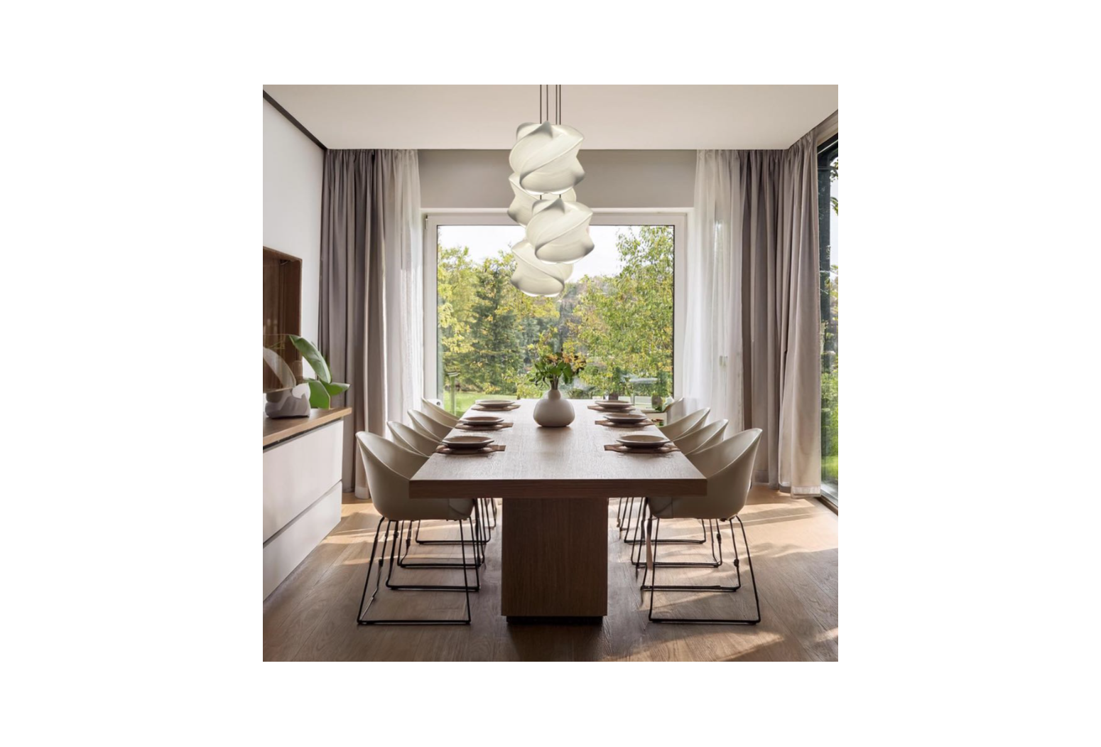Textilní závěsná lampa ZIPPOO o průměru 33 cm je vyrobená ze speciálního bílého nekonečného zipu, ručně tvarovaného do elegantního, organického tvaru. Svítidlo vytváří měkké, příjemné světlo, které neoslňuje a dodá vašemu interiéru útulnou atmosféru.