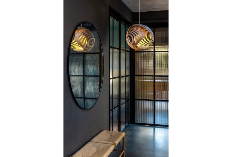 Kolekce designových lam Secto je navržena finským interiérovým architektem Seppo Koho. Stínítka jsou vyrobeny z vrstvených březových lamel spojených balzovým kroužkem. Stínítka jsou dostupné v bříze přírodní, bílé nebo černé vrstvené bříze. Stínítka jsou ručně vyrobeny velice zručnými finskými řemeslníky. Tento lustr je však prvním z kolekce, jenž navrhnul někdo jiný než dvorní designér Seppo Koho.
