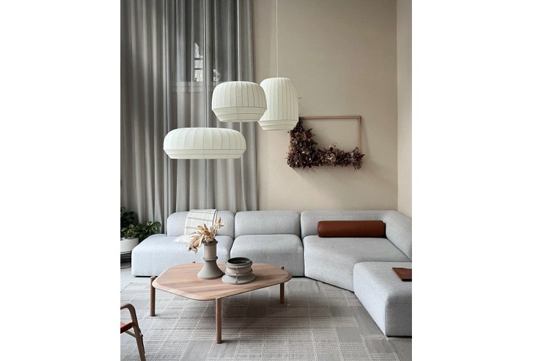 Závěsná lampa Tradition od norského designérského dua Morten & Jonas je současným pojetím tradičního řemesla. Tento výrazný a dekorativní design s jemně pleteným stínidlem vytvoří krásnou atmosféru, doplní váš interiér a zlepší váš domácí zážitek. Stínidla je vyrobena z nažloutlé polyesterové trubice, pečlivě se natáhne přes bílý kovový rám, než se upevní nahoře i dole. Napájecí kabel je dostupný ve třech tvarech: 'Malý', 'Vysoký' a 'Velký oválný', a je také ukryt v čistém hedvábném šňůru. Pověste Tradition závěsnou lampu jednotlivě nad postel, jídelní stůl nebo pohovku, aby místnost působila útulně, nebo je seskupte pro maximální efekt i po vypnutém.
