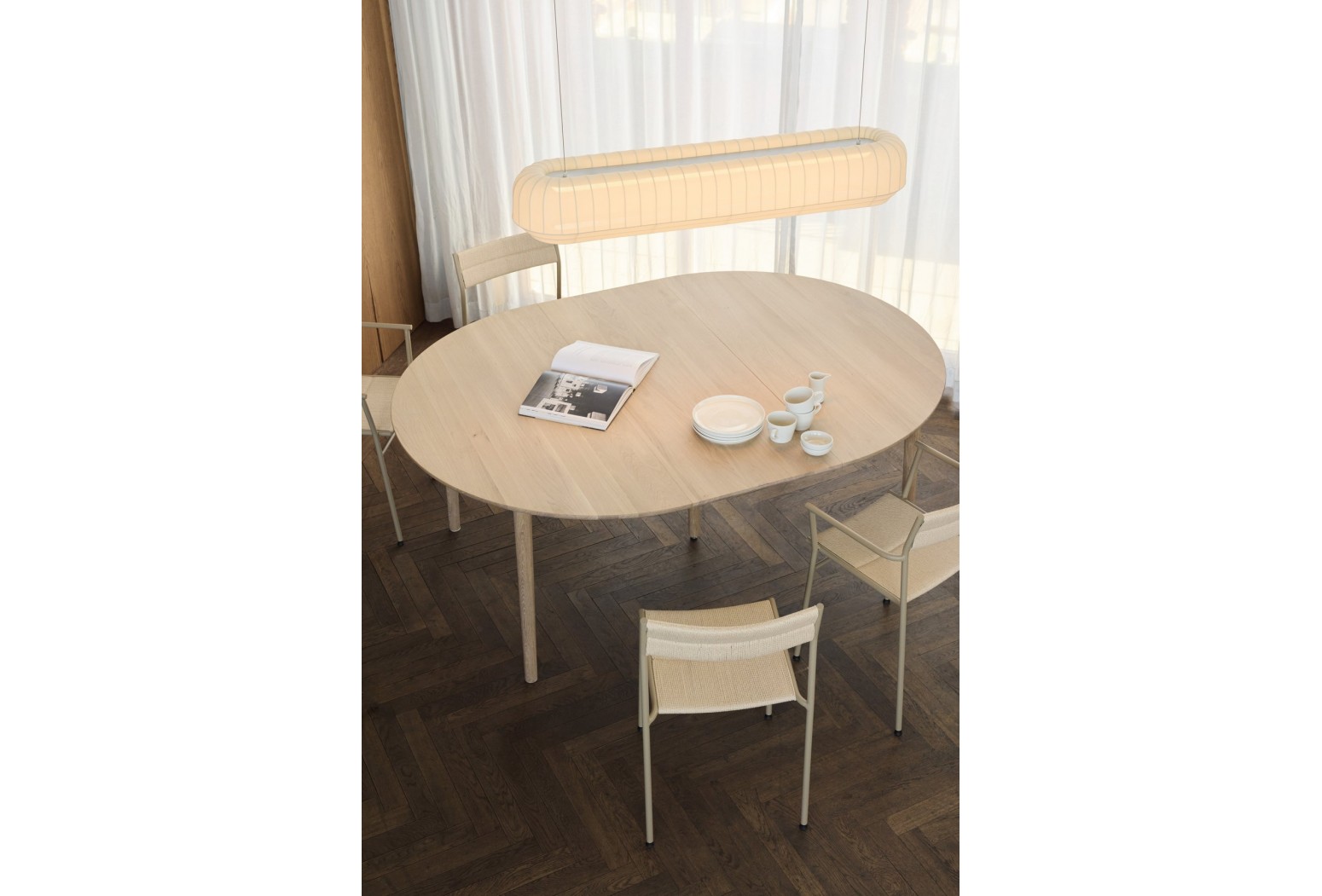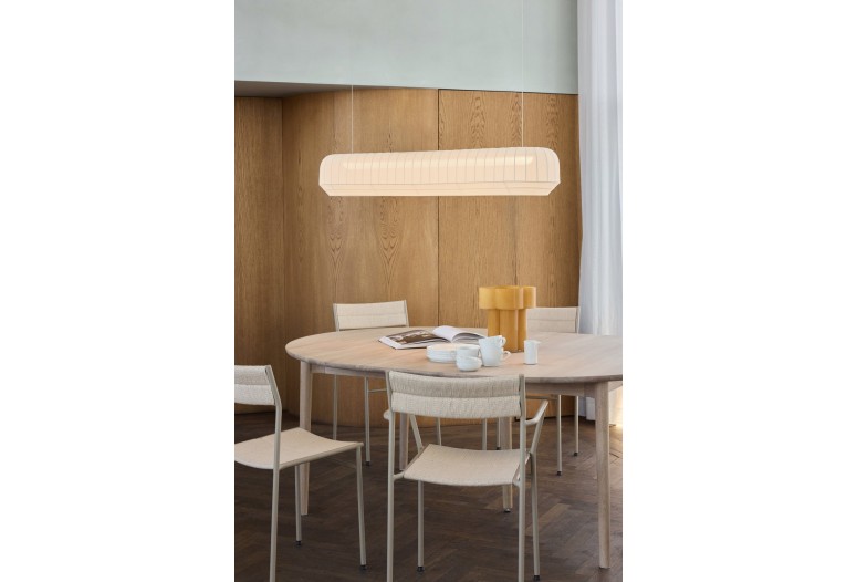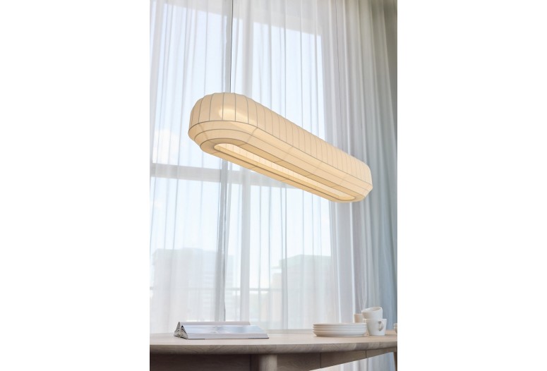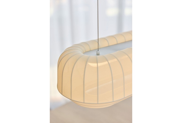 Závěsná lampa Tradition od norského designérského dua Morten & Jonas je současným pojetím tradičního řemesla. Tento výrazný a dekorativní design s jemně pleteným stínidlem vytvoří krásnou atmosféru, doplní váš interiér a zlepší váš domácí zážitek. Stínidla je vyrobena z nažloutlé polyesterové trubice, pečlivě se natáhne přes bílý kovový rám, než se upevní nahoře i dole. Napájecí kabel je dostupný ve třech tvarech: 'Malý', 'Vysoký' a 'Velký oválný', a je také ukryt v čistém hedvábném šňůru. Pověste Tradition závěsnou lampu jednotlivě nad postel, jídelní stůl nebo pohovku, aby místnost působila útulně, nebo je seskupte pro maximální efekt i po vypnutém.