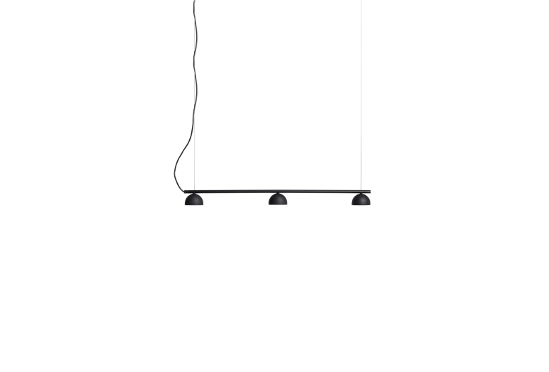 Vyrobená z práškově lakované ocelové trubice a dostupná ve vybraných barvách, závěsná lampa Blush Rail je integrována se sadou tří nebo pěti malých opálových akrylových difuzorů, které jsou všechny propojeny pro snadnou instalaci.
