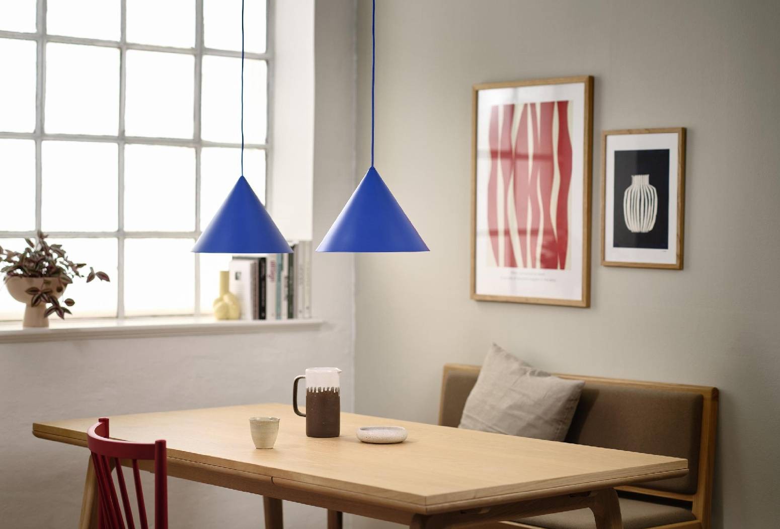Vnitřek kuželového stínidla je lakovaný bílou barvou a poskytuje vynikající světelný výkon a vytváří hřejivou atmosféru. Jednoduchý a čistý design a decentní barevná paleta usnadňují umístění v široké škále prostředí.