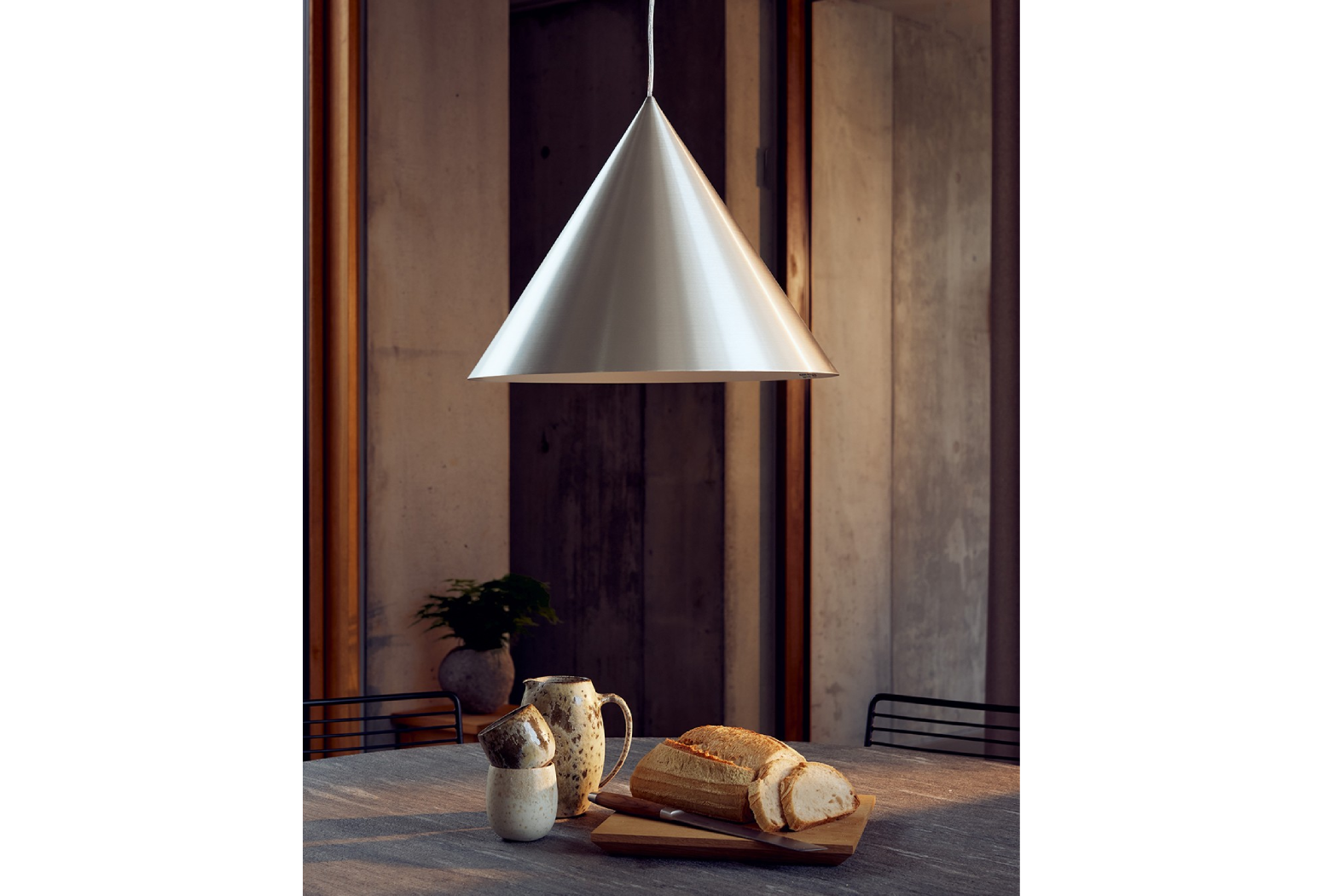 Vnitřek kuželového stínidla je lakovaný bílou barvou a poskytuje vynikající světelný výkon a vytváří hřejivou atmosféru. Jednoduchý a čistý design a decentní barevná paleta usnadňují umístění v široké škále prostředí.