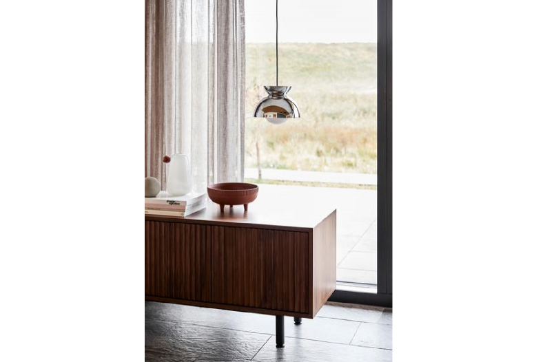 Toto výrazné závěsné svítidlo, složené ze tří elegantně uspořádaných polokopulí, představuje jedinečnou souhru kulovitých tvarů, která dodává každému prostoru hloubku a sofistikovanost. Obrácené uspořádání kopulí vytváří podmanivý vizuální efekt, zatímco jemné otvory v horní kopuli umožňují jemné, vzhůru směřující světlo, které umocňuje atmosféru.