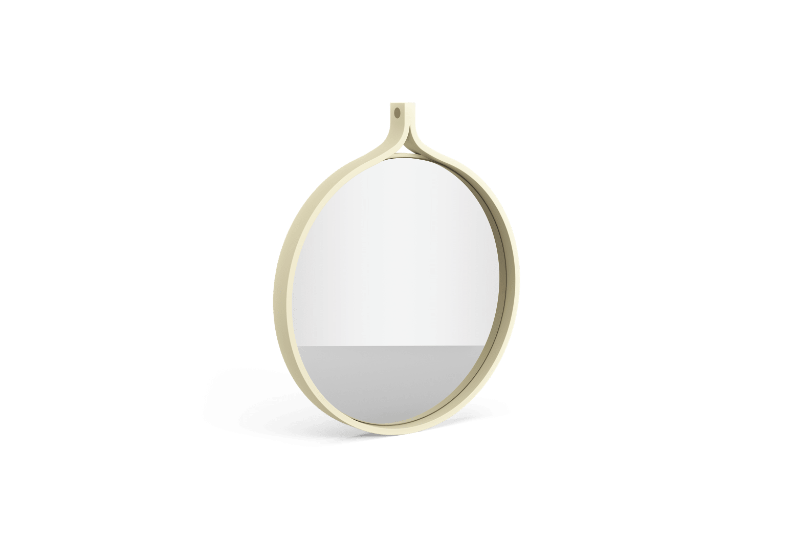 V sérii zrcadel a podnosů prozkoumala Mia Lagerman možnosti kruhového tvaru. Podrobnosti rámečku dávají produktu výrazný výraz a směr. Zároveň detail vytváří funkci zavěšení zrcátka a rukojeti.