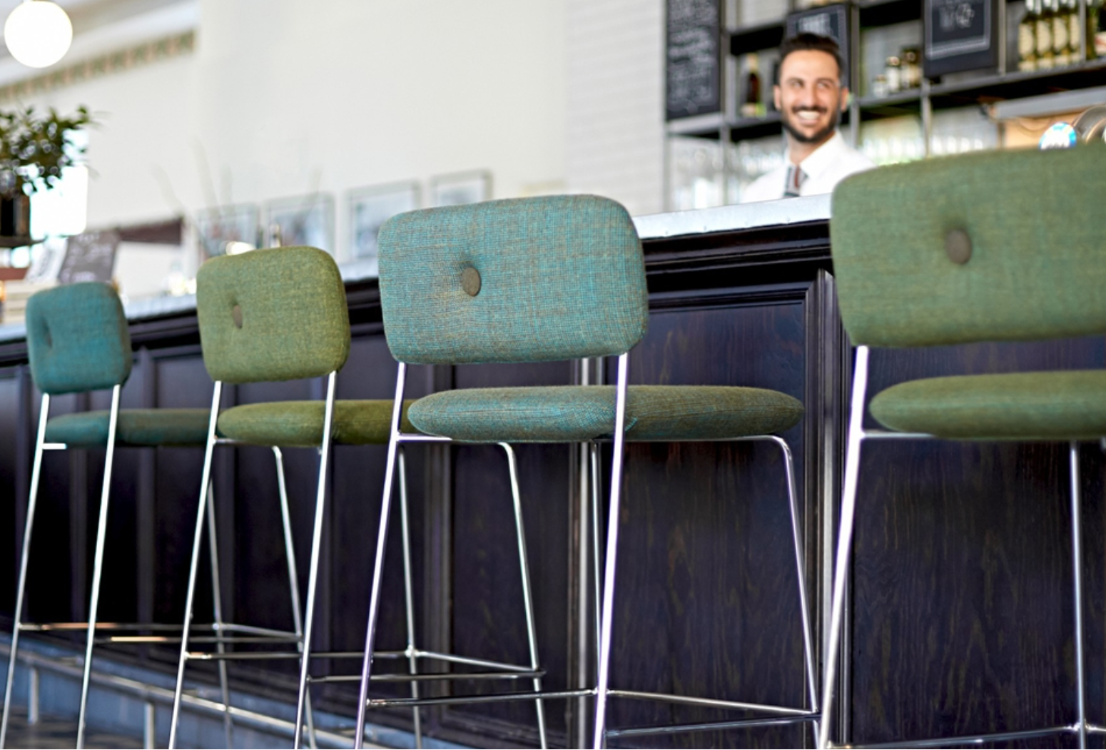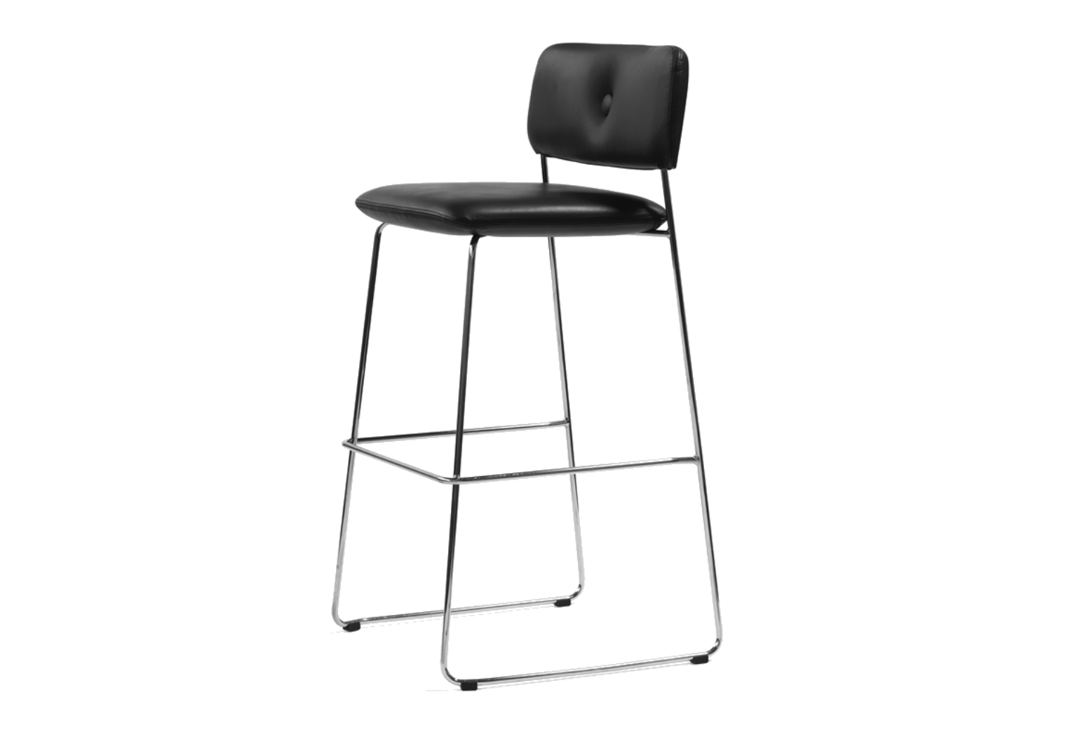 Stefan Borselius has designed the Dundra seating series that is constructed around a chromed steel frame with upholstered moulded seats. The covered button that is one of the hallmarks of this family of furnishings helps ensure that the backrest retains its intended shape. Dundra chair is a great choice in, for example, restaurants, hotels and libraries.