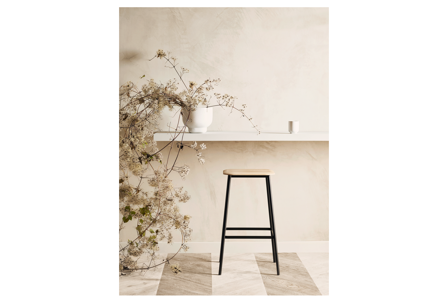 Read moreAllan Nøddebo has created a Scandinavian design in a class of its own. The stool is simple and stylish, yet cool and edgy at the same time. The bar stool's contemporary and modern look makes it a beautiful statement piece and adds the perfect finishing touch to any decor. The chair's clean and almost minimalist expression ensures it fits perfectly with the rest of the furniture in your home. You can choose a seat in solid wood or in durable leather – both stylishly combined with robust metal to inject lots of character into the simple bar stool.