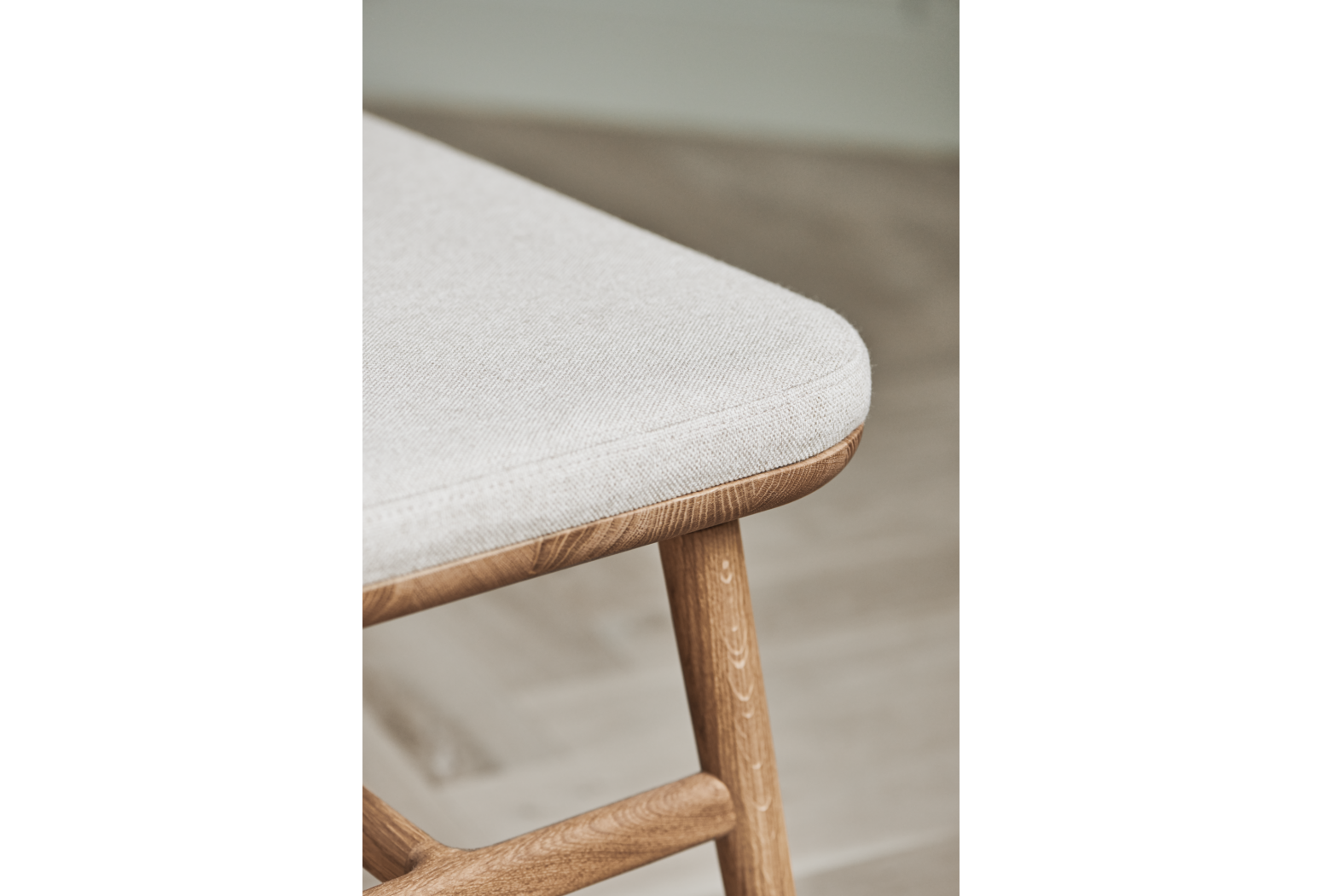 The Flor series is designed by Martin Lauritsen and inspired by both Scandinavian and Japanese design heritage – crafted with the highest precision in every detail with sophisticated woodwork in FSC®-certified oak and upholstered in STANDARD 100 by OEKO-TEX® certified fabric or LEATHER STANDARD by OEKO-TEX® certified leathers. The slightly angled legs provide a strong and stable seat making Flor a perfect choice in both home and professional settings.