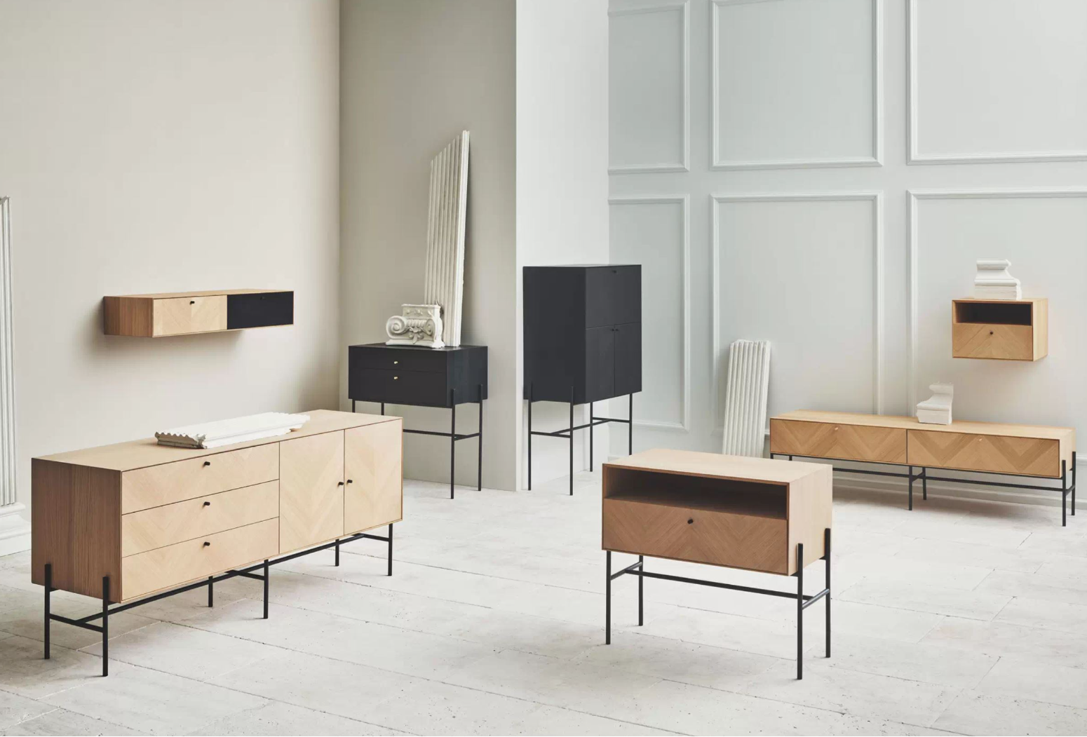 The Luxe series is designed by the Danish designer Michael H. Nielsen, and comprises an elegant series of storage furniture and bar cabinets. All designs feature the most beautiful herringbone pattern, which magically seems to reflect the light and bring the design to life.