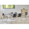 The Navis range of sideboards and highboards consist of veneered cabinets with mitre joints, rounded solid front edges and rounded solid legs matching the underframe of the tables.