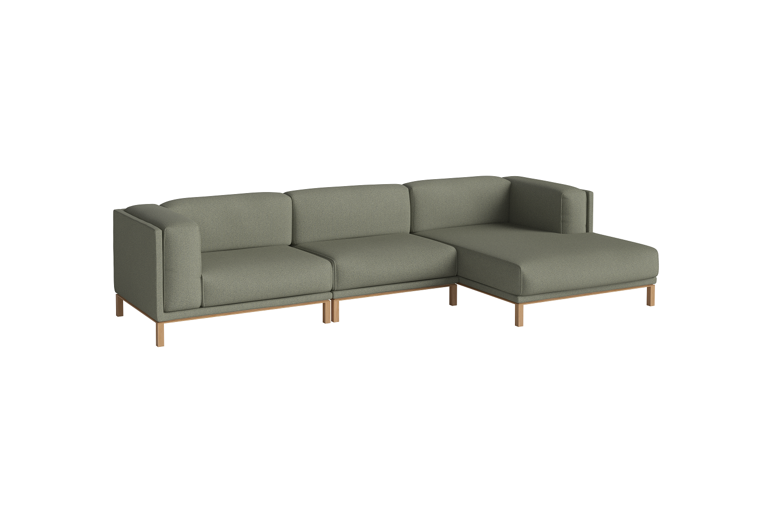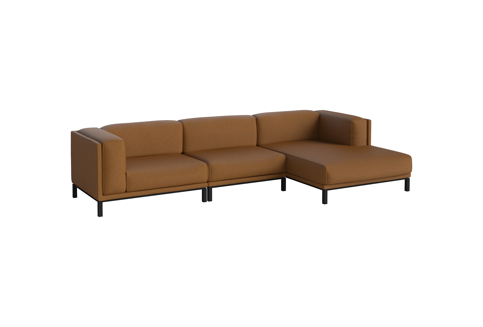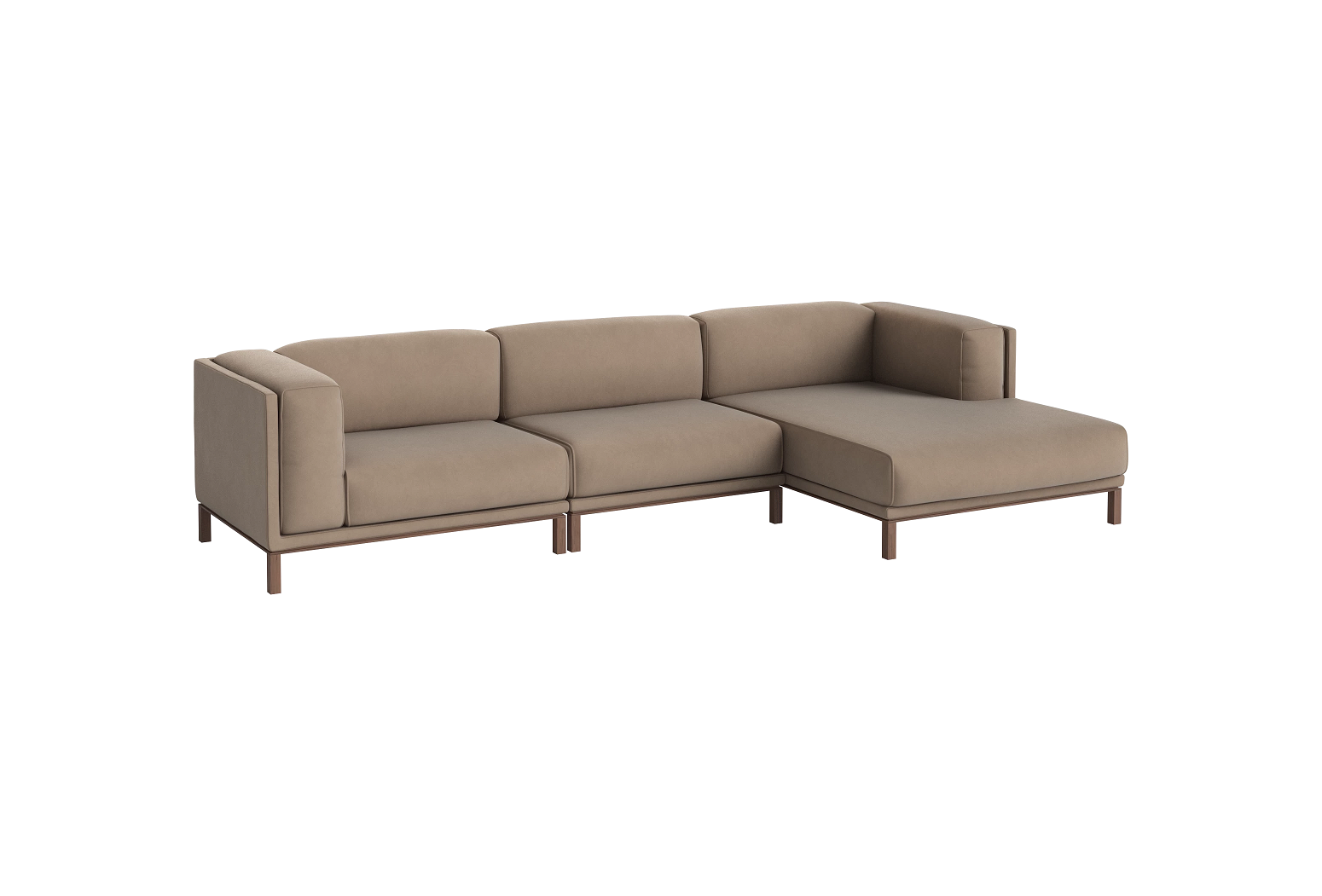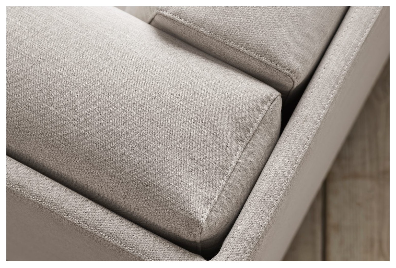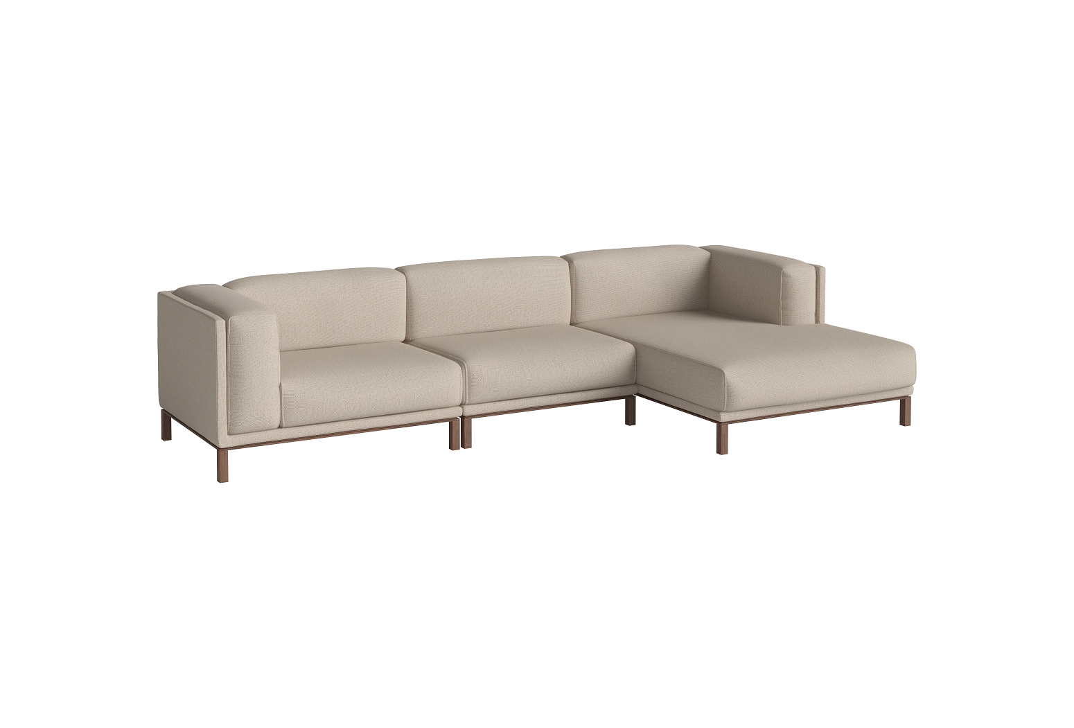 The Cosy modular sofa fuses voluminous and simple elements with good quality. The skilled craftsmanship details can be seen in the solid wood base and in the fabric frame, where the stitching is deliberately visible to create an exclusive look. The slender legs are supported by a steel frame, making Cosy light, but still robust. The result is an exclusive sofa with a classic look.