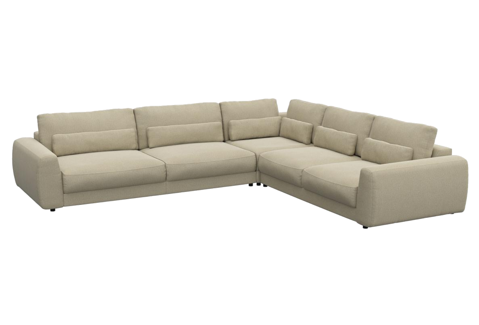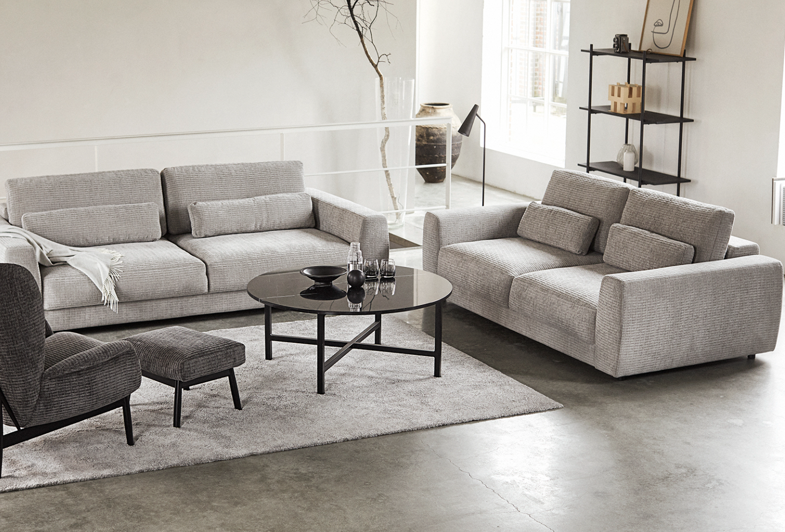 Petrone offers you the ultimate lounge feeling. And room for the family. The large proportions ensure multiple seating positions and it looks very stylish at the same time. Petrone is a modular system with many different modular options. You can choose between two different back comforts. One with fibre balls and one with a feather-foam mix. The seats are made with a foam core, wrapped with a feather-foam mix to create premium seating comfort. You can further combine fabrics and leather