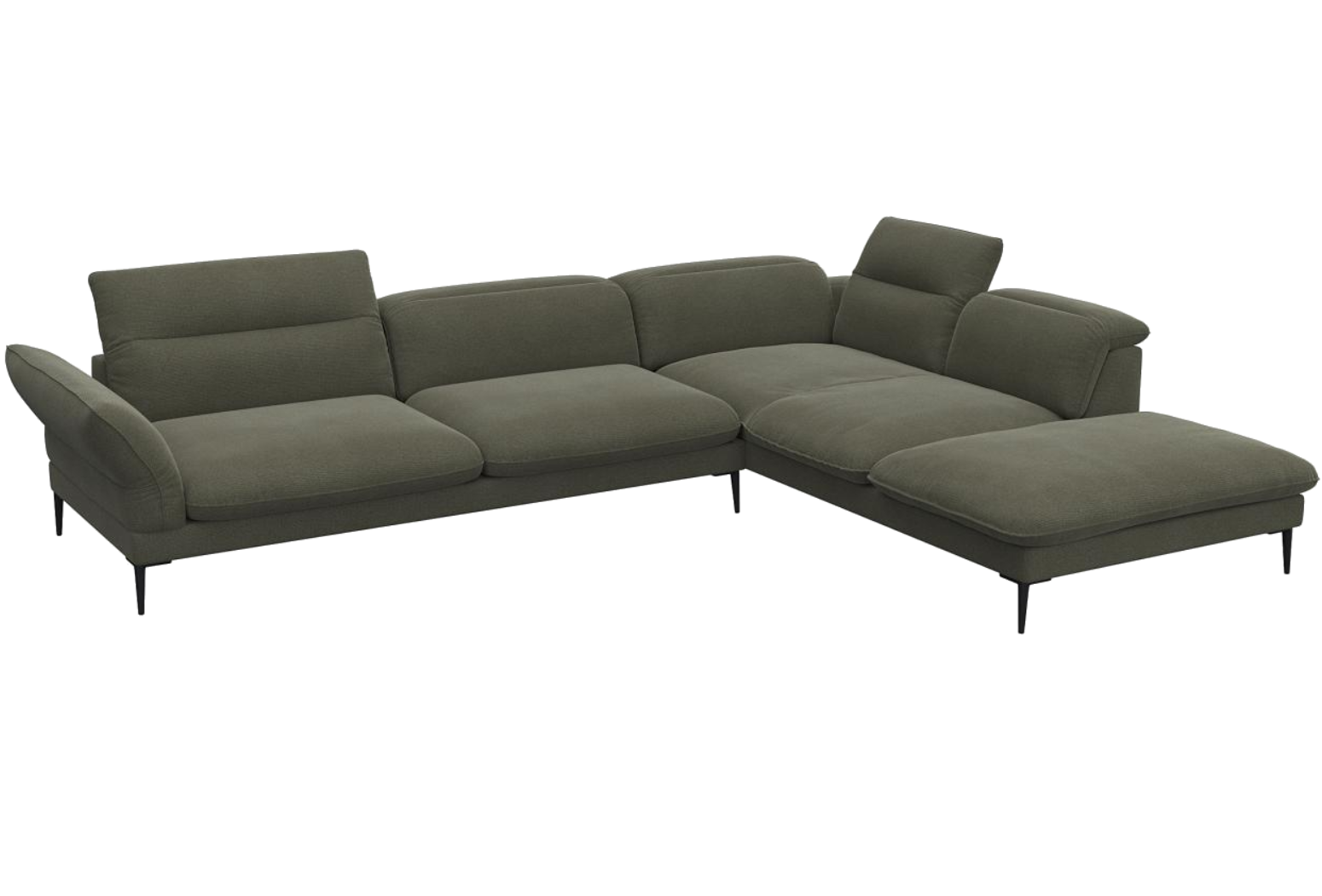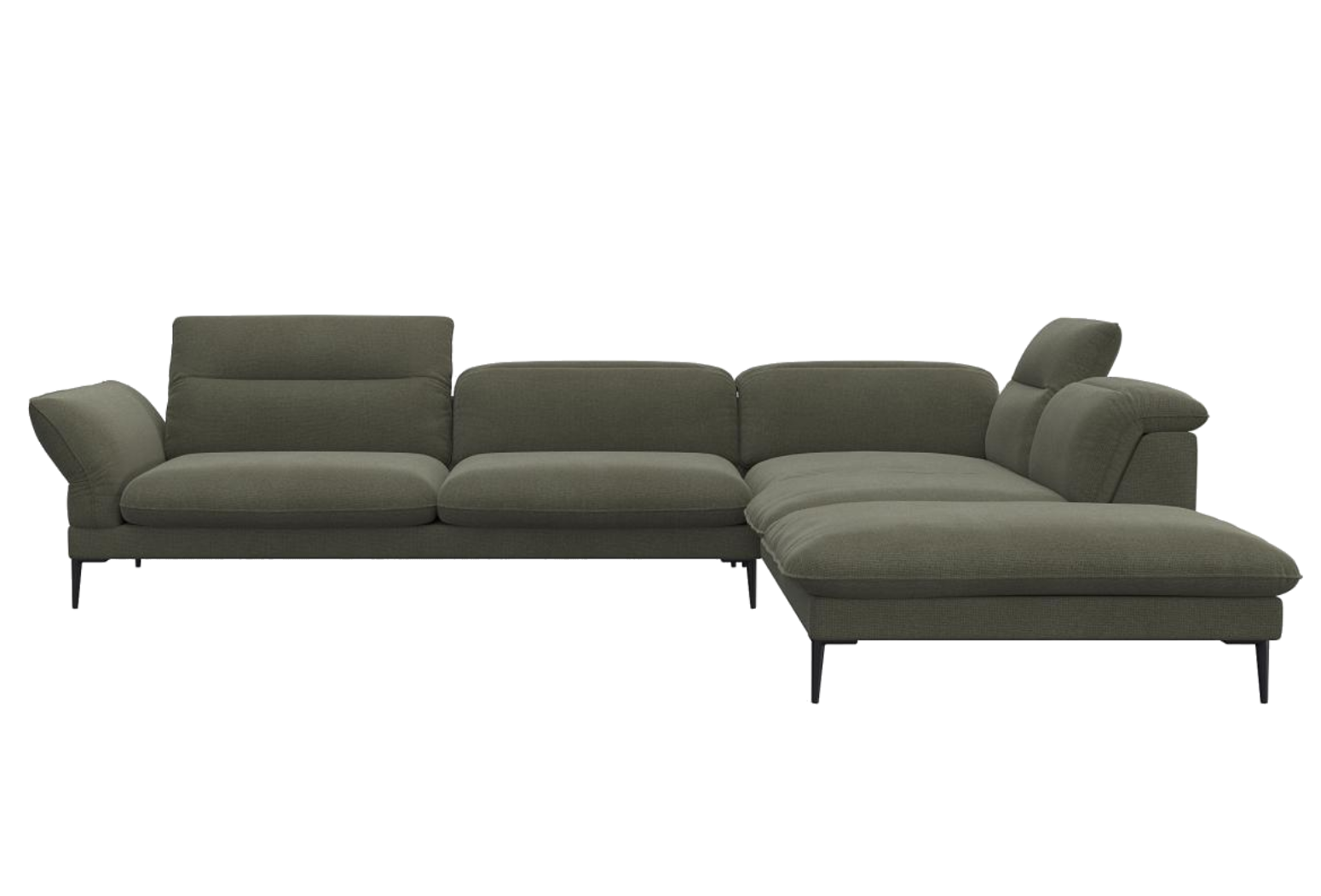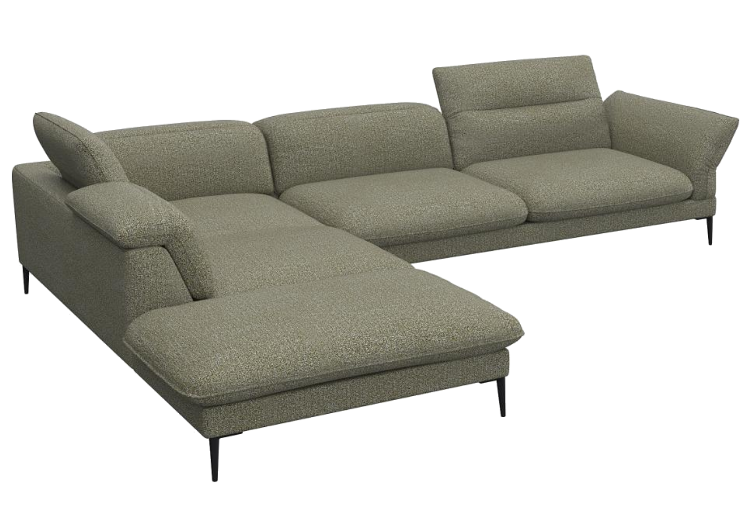 Salino is Italian inspired sophistication! This sofa offers manually adjustable head rests for each seat for additional neck support. The back and seat cushions are fixed. The arms have soft rounded shapes that contribute to the elegance of this sofa. The sofa is available with beautiful organic shaped black metal legs that fit the sofa perfectly.