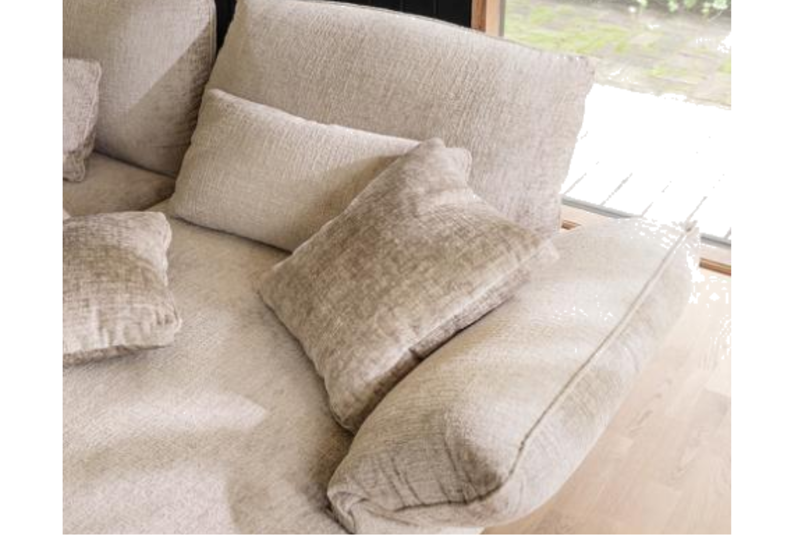 3 seater and chaiselong. Cortona is a modern lounge sofa with a soft, inviting attitude. The high-quality foam padding in combination with the lumber cushions, which are included, provides a premium seating comfort. The armrests and the backrests have built-in stepless tilt adjustment, so you can adjust it to your mood. If you want to sit straight, lie down a little or completely is up to you. The sofa can be adjusted to your favorite position.