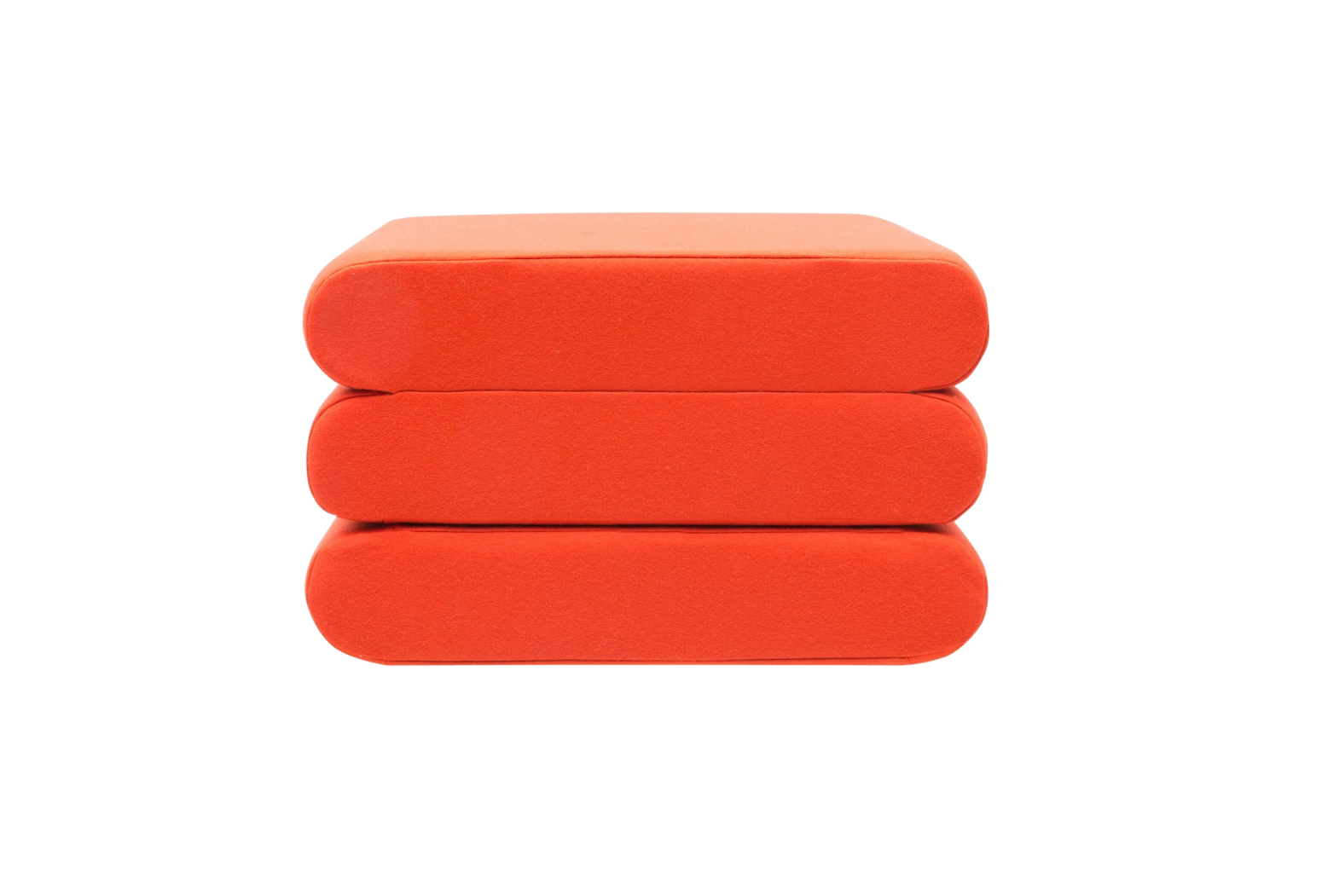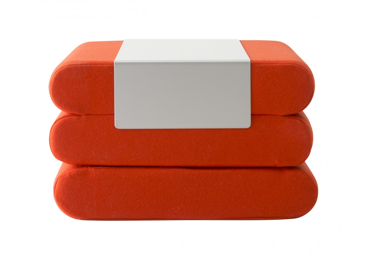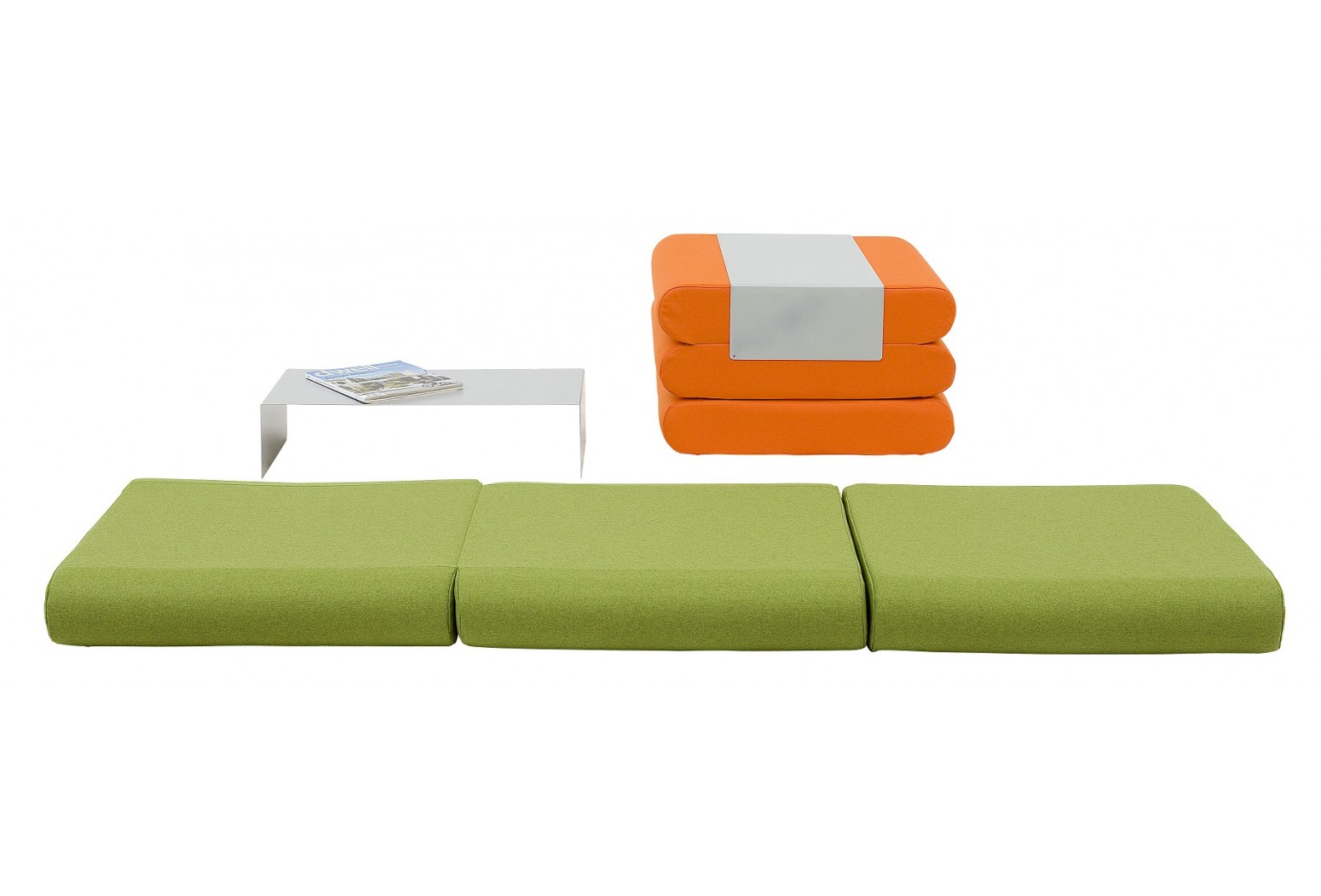 This pouf is very popular in many homes. It’s decorative, functional, flexible and easy to store and fold out. The triple-fold mattress unfolds into a sleeping mattress – a perfect bed for your guests or for the children to play on. The light tray table turns the pouf into a table.