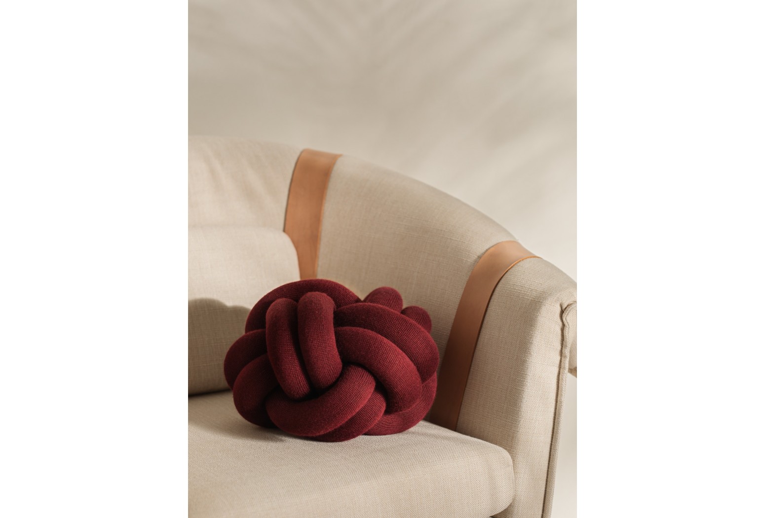 A cushion with an unique character, based on sculptural form instead of patterns. Knot is made from a knitted tube, several meters in length, which is then tied up to create a compact knot which is as comfortable as a support in the sofa as it is elegant to behold. Thanks to its strong design, Ragnheiður Ösp Sigurðardóttir’s Knot cushion belongs to the exclusive group of products that remain in one’s memory.