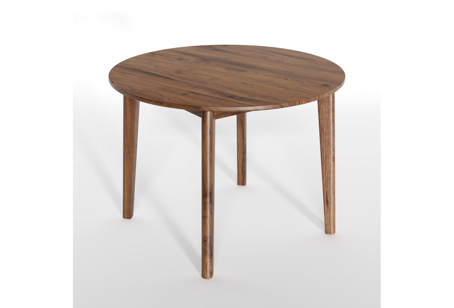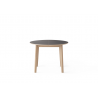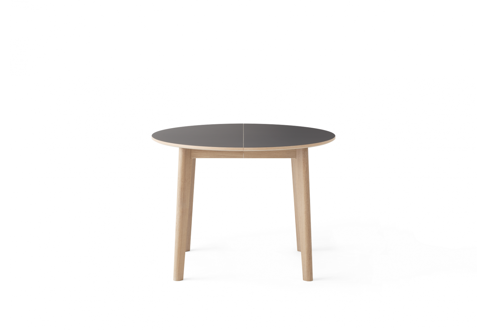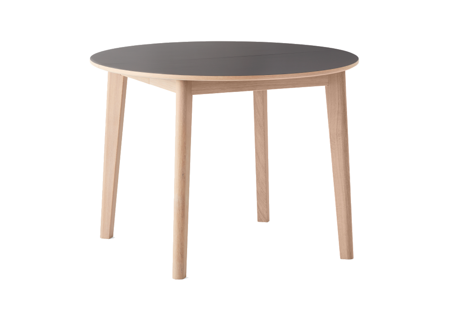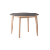 Table #120 is ideal for modern, compact living with its small and perfectly round shape. The wooden legs appear both edgy and soft with interesting lines and a smooth rounded finish. The legs are slightly angled, for a vivid expression and contemporary look. The table is extendable with up to two leaves, which are available as additional purchases.