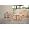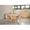The Collum table with its nicely curved column bases is an iconic design second to none. The fixed table top with solid edges has a smart integrated storage facility for extension leaves at each end and can be ordered with one or two extension leaves matching the table top. The table is available in a wide selection of wooden finishes and hard-wearing laminated finishes in a wide variety of colours.