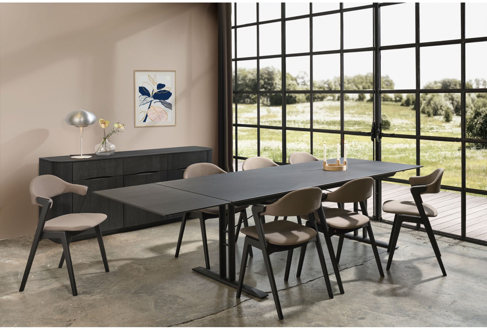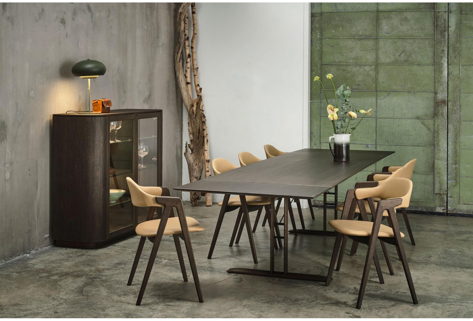 The Malli dining table and its classic, modern design with a beautiful leg detail will match any home interior from classic to modern. The fixed table top with solid edges has a smart integrated storage facility for extension leaves at each end and can be ordered with one or two extension leaves matching the table top. The table is available in a wide selection of wooden finishes and hard-wearing laminated finishes in a wide variety of colours.