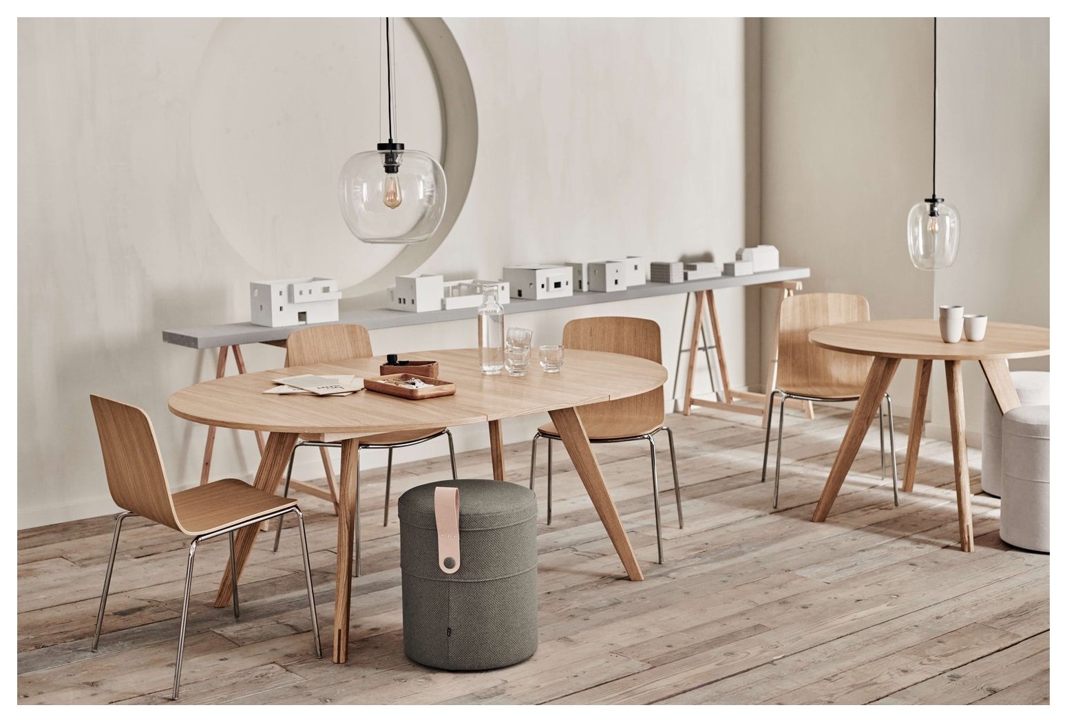 The New Mood collection contains dining tables, coffee tables and a sideboard, which are all available in a variety of carefully selected wood types and laminate colours.