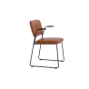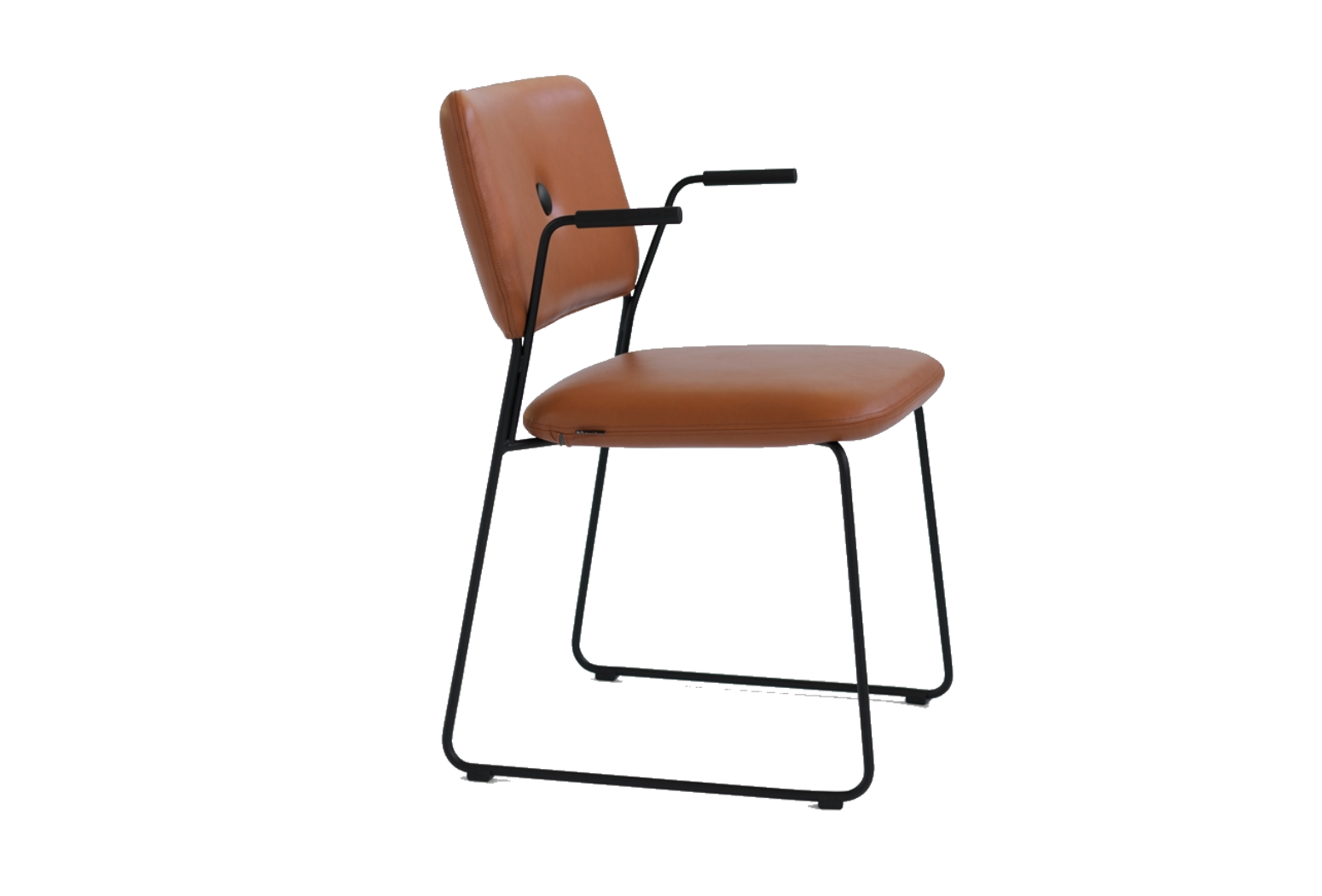 Wood and steel frame. Moulded CMHR foam padding. Upholstered in fabric or leather. Leather as per colour chart. 6a. Chrome plated (chrome III) or black-painted steel frame. Plastic foot.