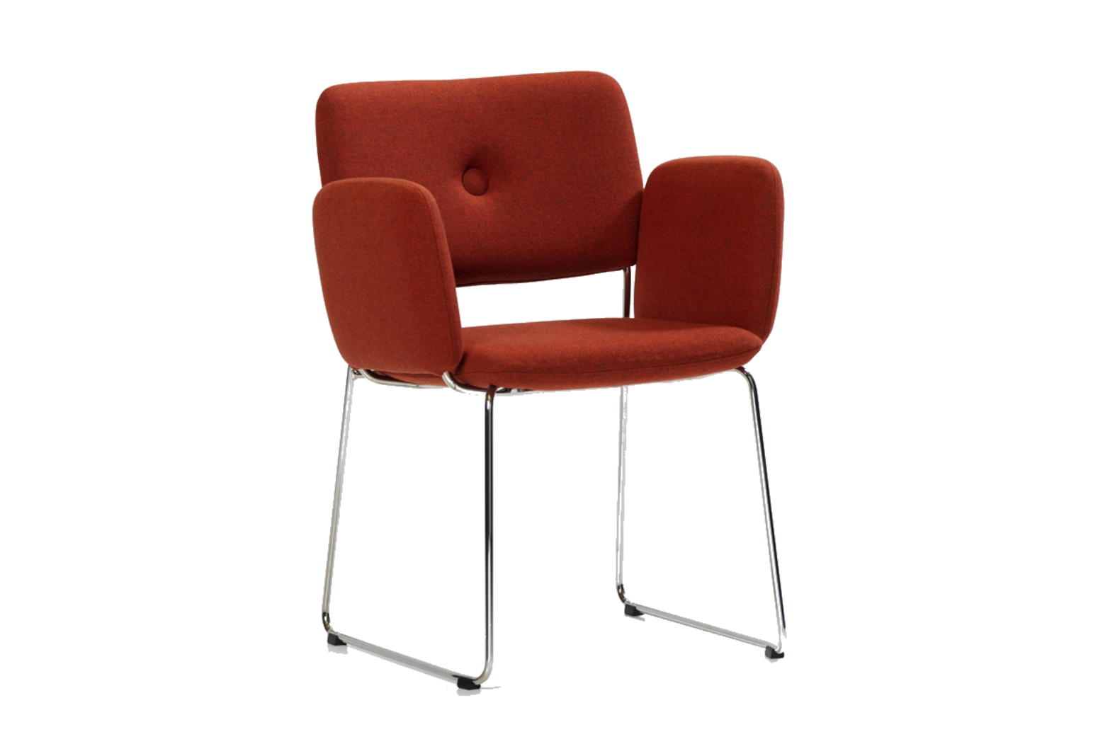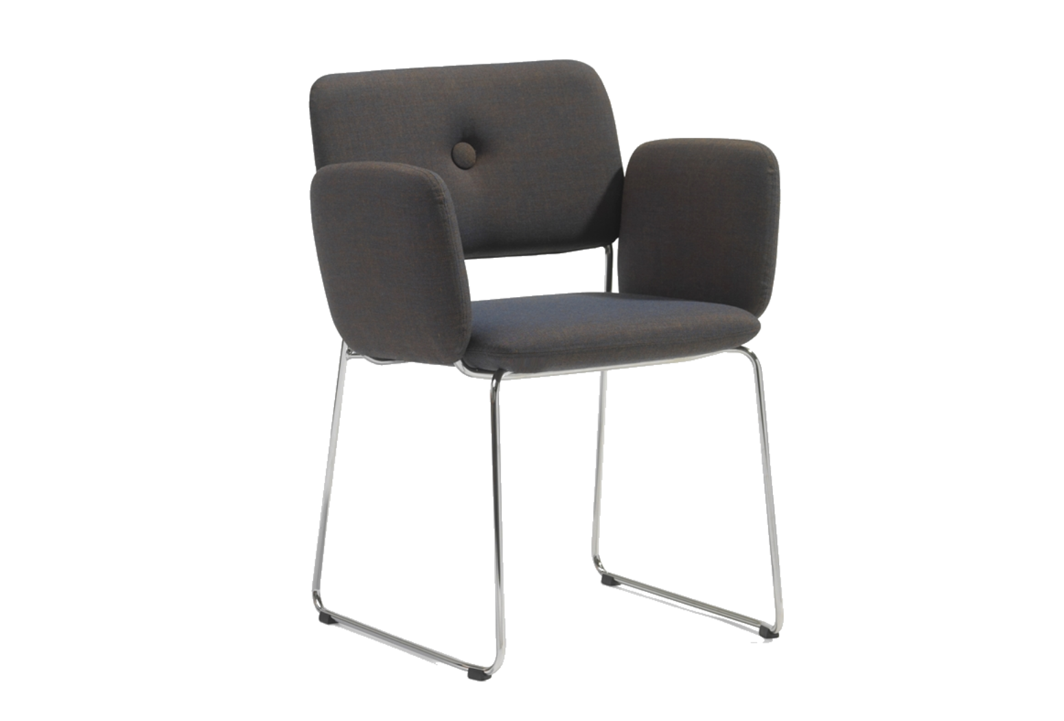 Stefan Borselius has designed the Dundra seating series that is constructed around a chromed steel frame with upholstered moulded seats. The covered button that is one of the hallmarks of this family of furnishings helps ensure that the backrest retains its intended shape. Dundra chair is a great choice in, for example, restaurants, hotels and libraries.