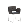 Wood and steel frame. Moulded CMHR foam padding. Upholstered in fabric or leather. Leather as per colour chart. 6a. Chrome plated (chrome III) or black-painted steel frame. Plastic foot.