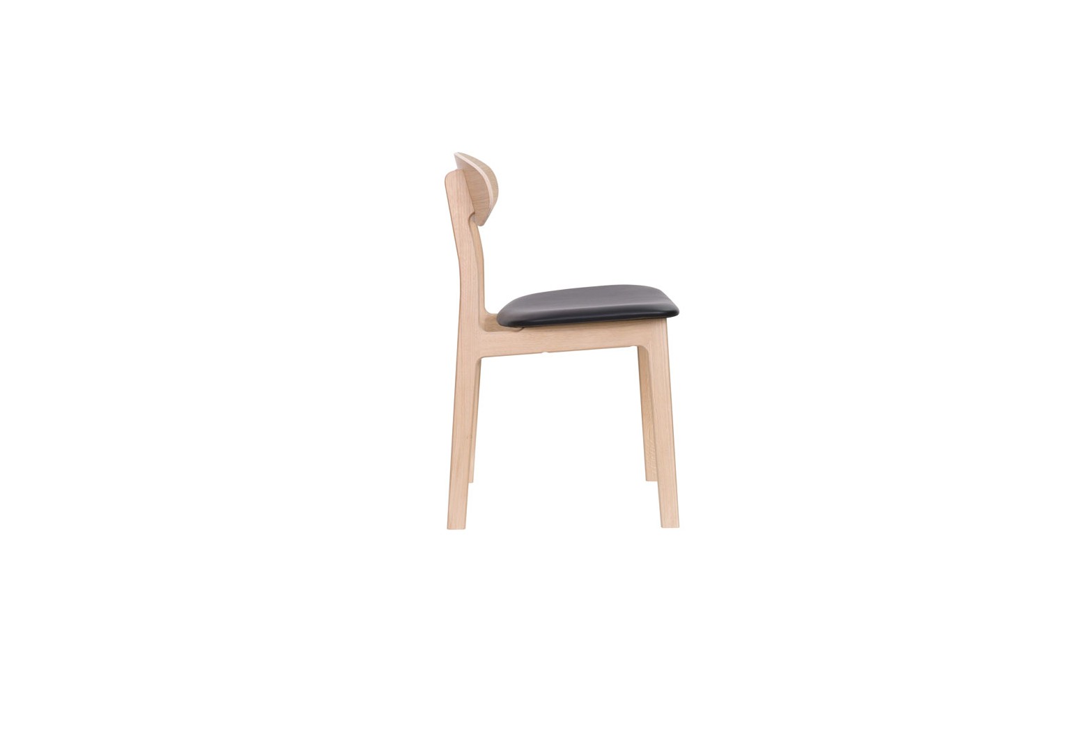 Dining chair. Solid wood chair with back in veneered plywood with visible plywood edge. Packing unit: 2 pcs per box. Tested and approved for public use. Seat height 46 cm.