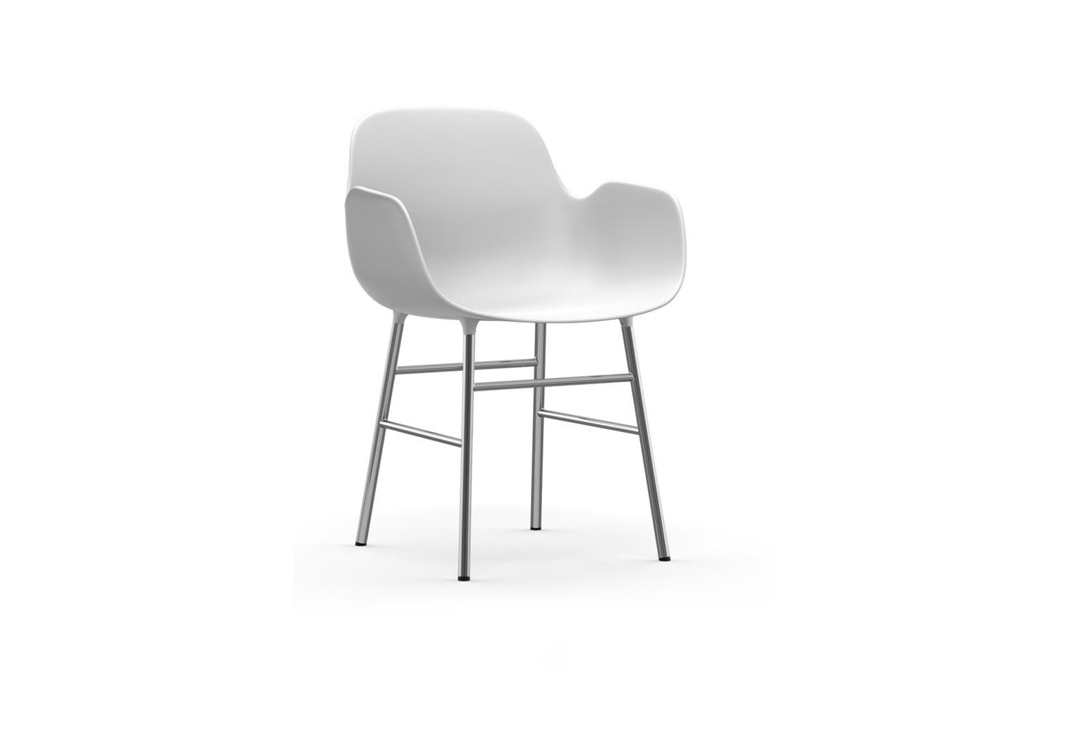 With the mission of creating a shell chair with a more unified look that would stand as one cohesive unit, Simon Legald has created the Form Chair for Normann Copenhagen.To achieve this seamless, integrated look, a new and innovative solution for gathering the seat with the legs has been developed. The curved plastic seat and frame of oak, walnut or steel are naturally integrated with the seat using a unique cup system. The plastic seat and wood or steel legs meet elegantly, accentuating the high quality craftsmanship and the simplicity of the Scandinavian furniture design.Form is a modern armchair with a minimalistic expression. With its simple and contemporary design Form Armchair has a soft and welcoming silhouette and a distinctly residential look. The legs appear almost as if they are growing out of the shell. This gives the design flexibility and makes it possible to vary the frame in a great number of ways, accommodating a vast number of interiors.The Form Armchairs have great back support and provide freedom of movement while the armrests provide extra room for relaxation. The strong materials and contoured shape ensures a comfortable seating experience. Combined with a clean design, that makes Form a flexible and functional chair for any room, for example as an office chair, a dining chair or occasional chair.