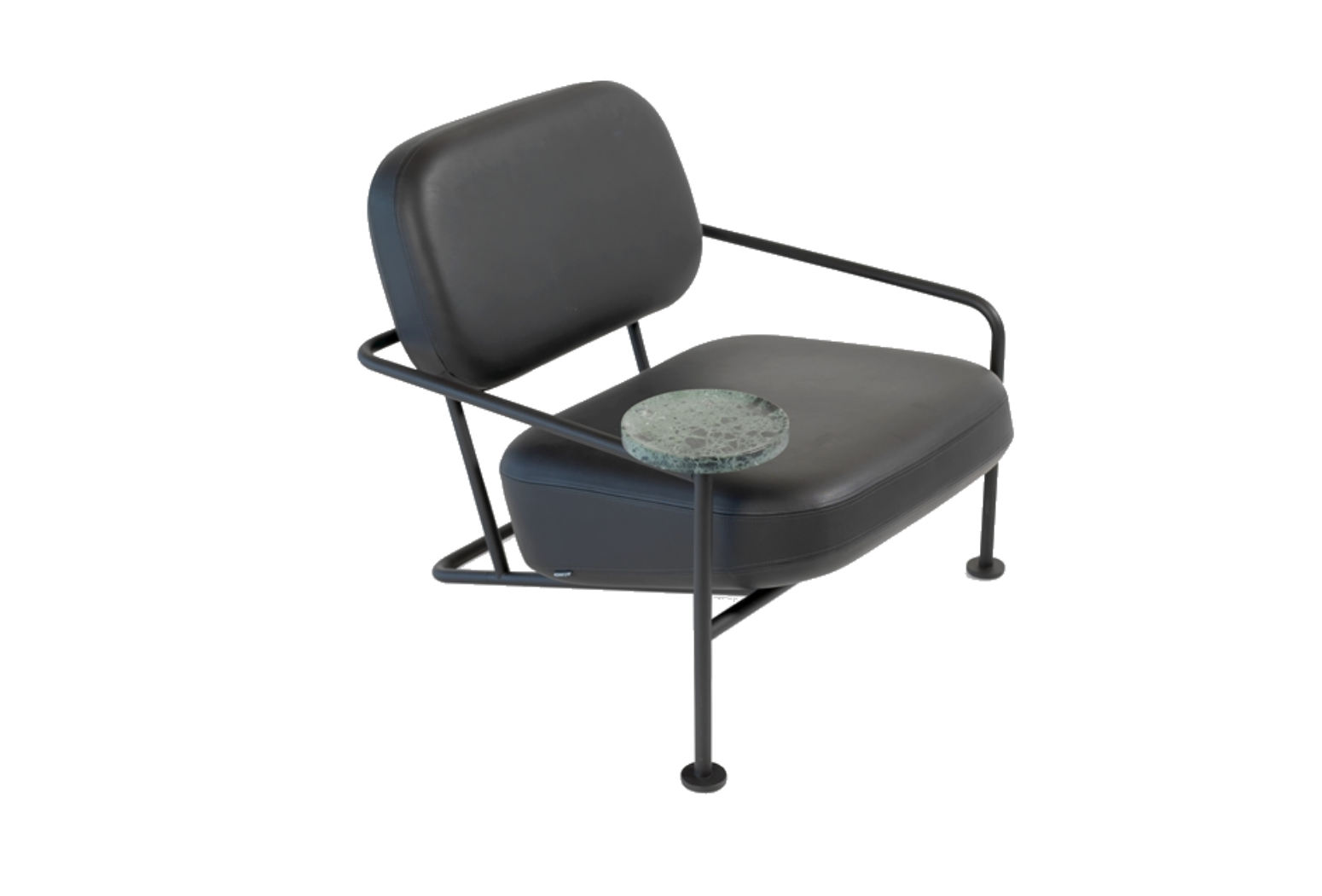Moulded CMHR polyurethane foam padding. Upholstered in fabric or leather. Leather as per cc. 6a. Frame lacquered steel.