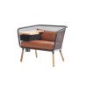 Steel fittings for baskets and legs made of painted tubular steels and flattened expanded metal. Black painted steel, fine structure. Oiled oak legs. Seat / lumbar pillows made of polyester foam and down. Upholstery fabric or leather.