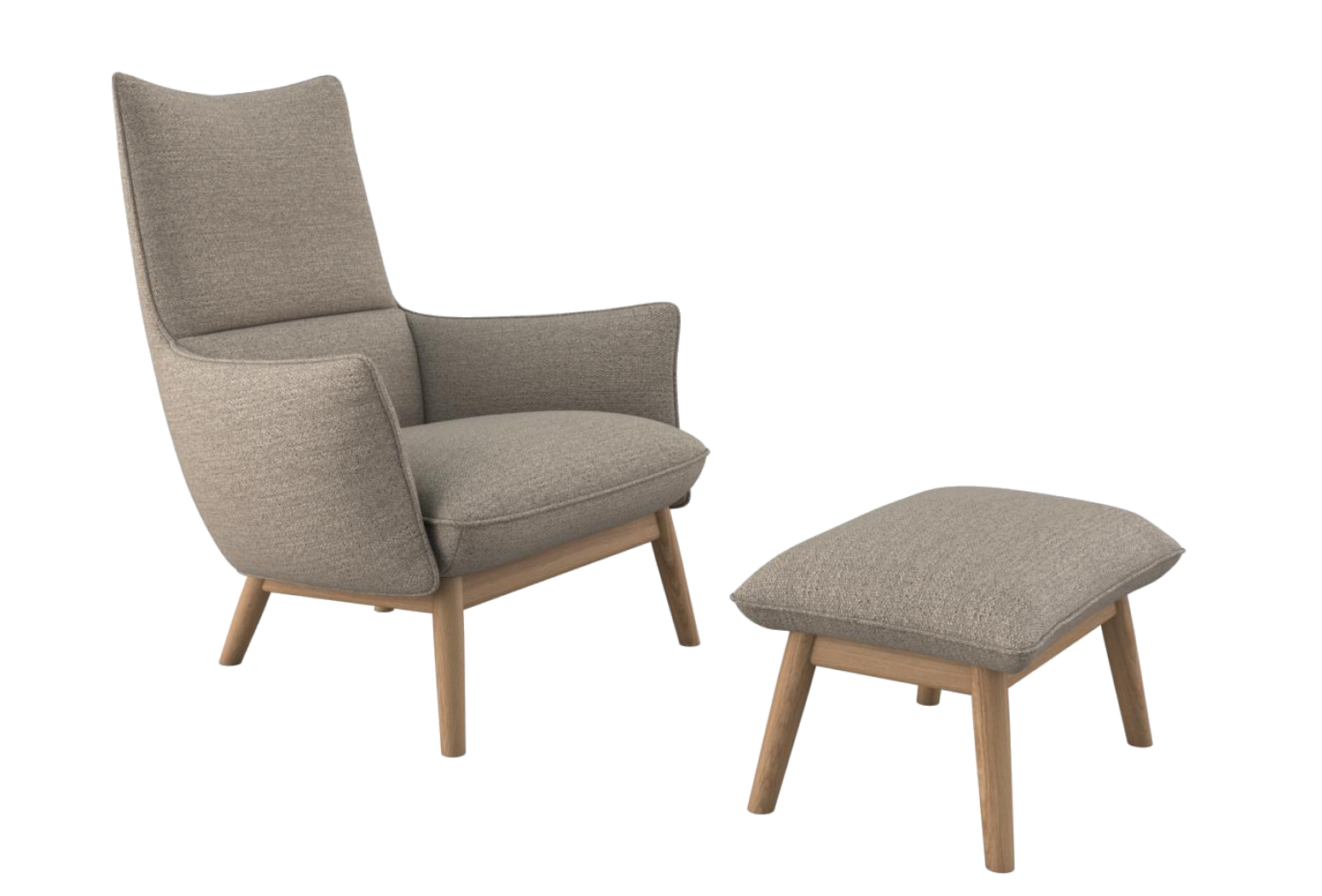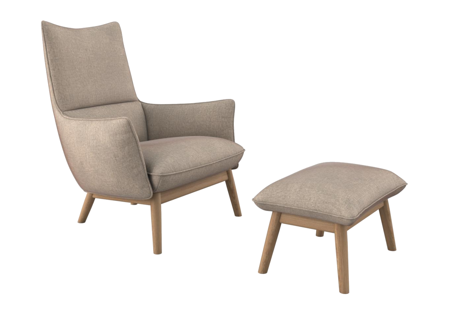 Adria is a great armchair that creates an atmosphere to think, learn and live. No living space is ever truly complete without one. Adria seamlessly blend style and comfort. The Adria chair is beautiful from all angles and with great lumbar support. The armchair is a beautifully crafted design that will work as an iconic piece in your living room. Adria comes with a wooden leg design that emphasises the soft and elegant expression. The matching footstool completes the look and ensures optimal relaxation.