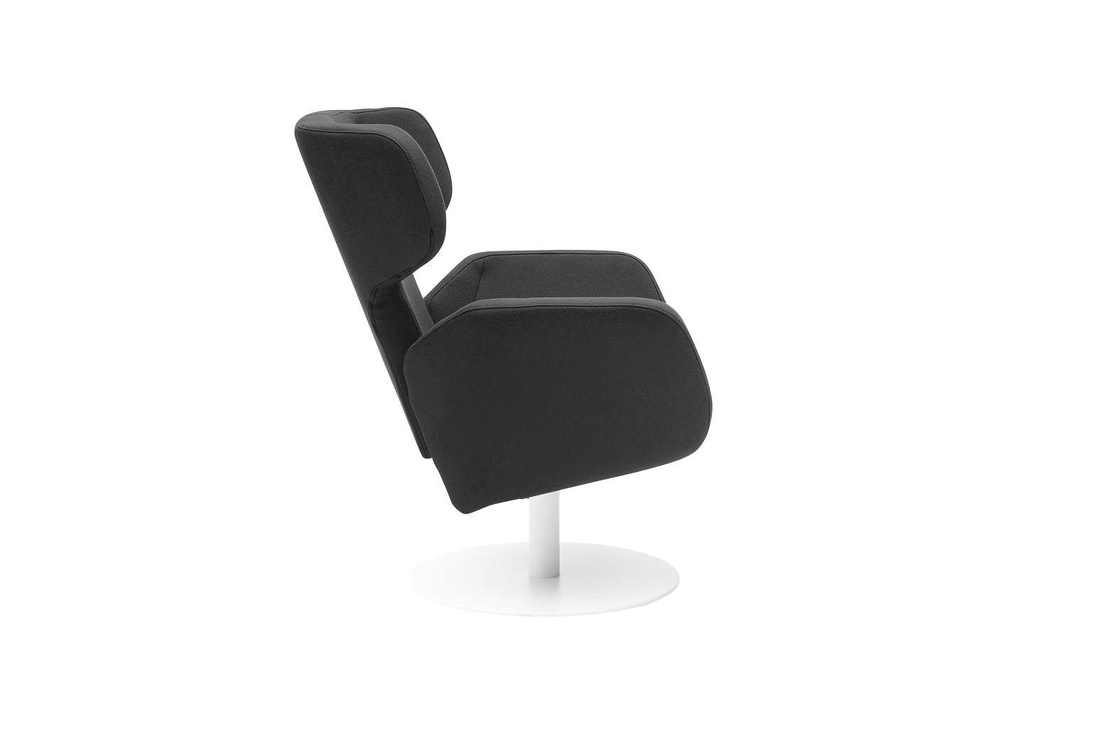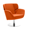 COSY is a lounge chair with a special twist: You can use it as a low lounge chair or turn it into a cosy wing chair by lifting the back to a higher position. The high backrest creates a very intimate chair, and the low backrest has an open and social feel. COSY will suit any mood you are in. The base comes in full gloss stainless steel or white lacquer.
