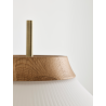 A series of lamps with a distinctive, elegantly shaped shade in fluted opal glass and with refined details in wood.