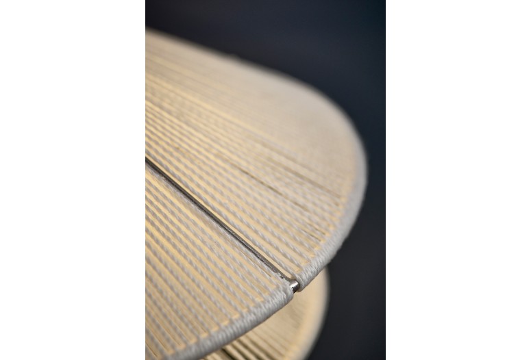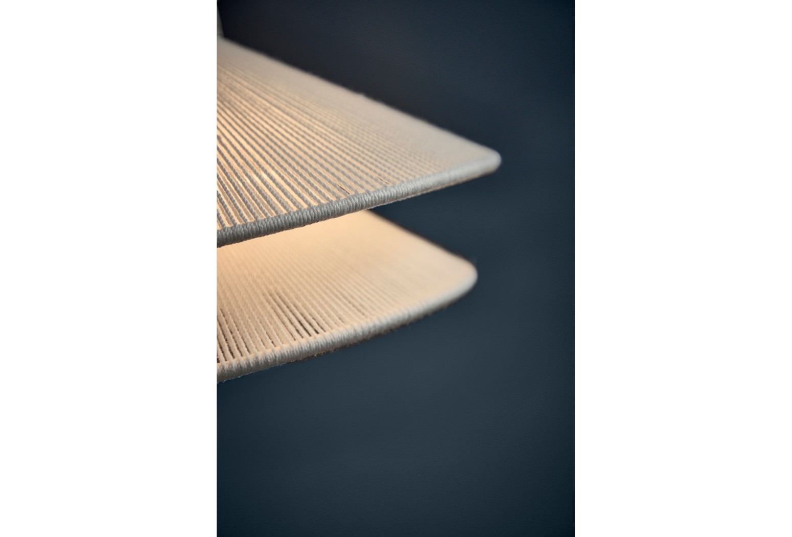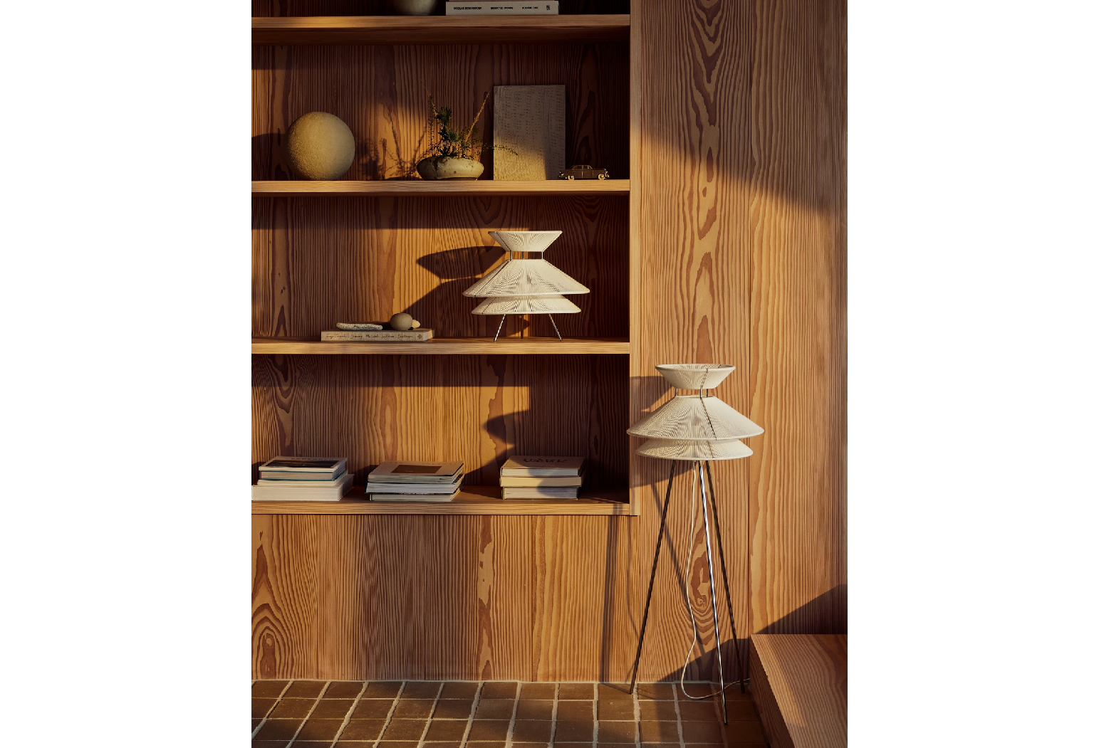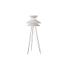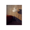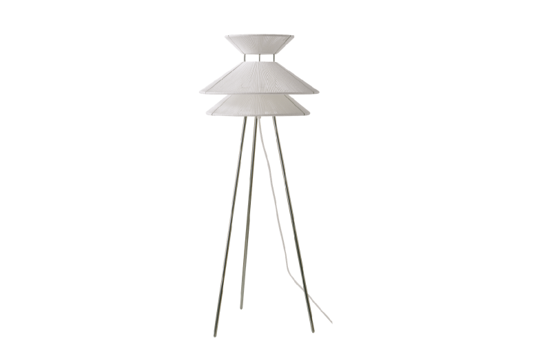 Available in both floor and table variations, Kiku is produced from stainless steel and with linen strings.