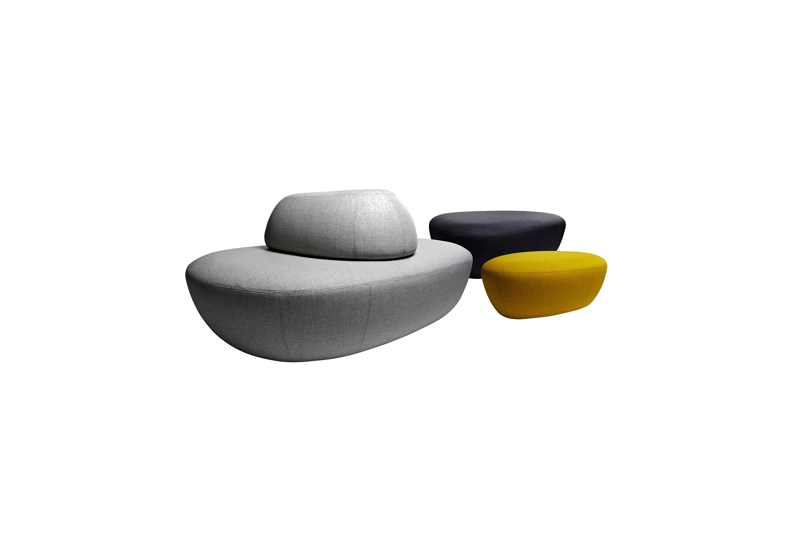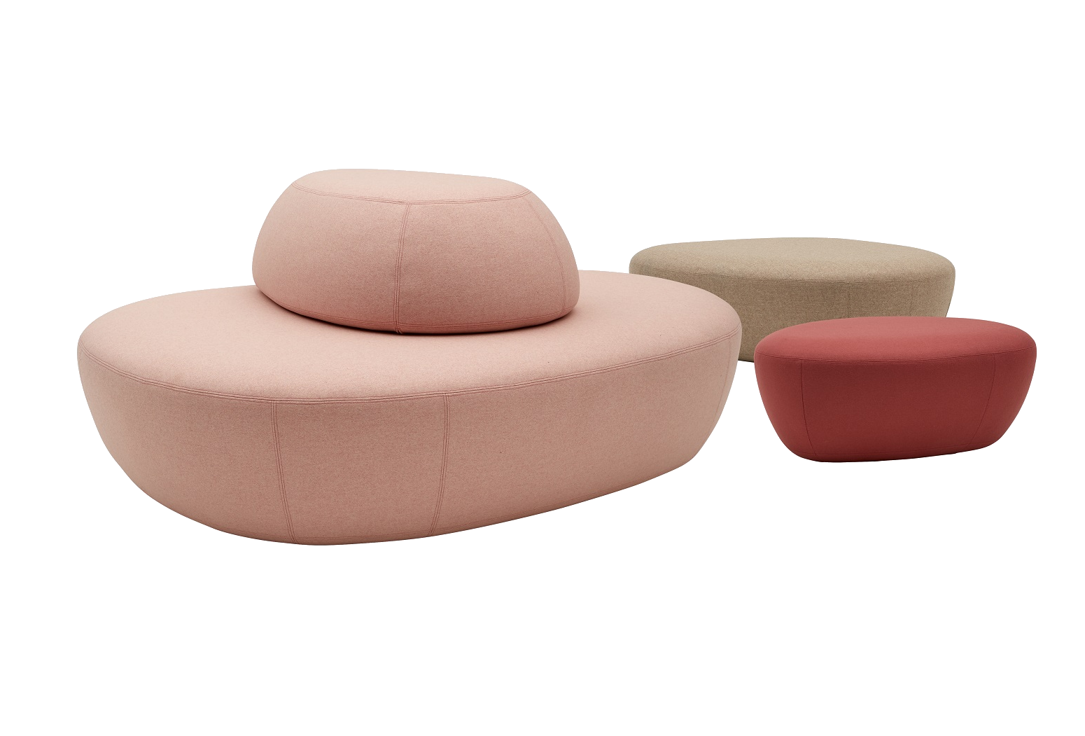 SISTERS is a unique collection of sculptural and versatile poufs and sitting units. They are designed without a particular ”direction” and can be placed freely in the surrounding environment, which gives the interior designer unlimited creative ways to play. The design is soft, light and organic and comes in 4 sizes that can be combined or used alone. The largest size has a comfortable backrest, which makes it perfect for installations in large waiting areas and public spaces.