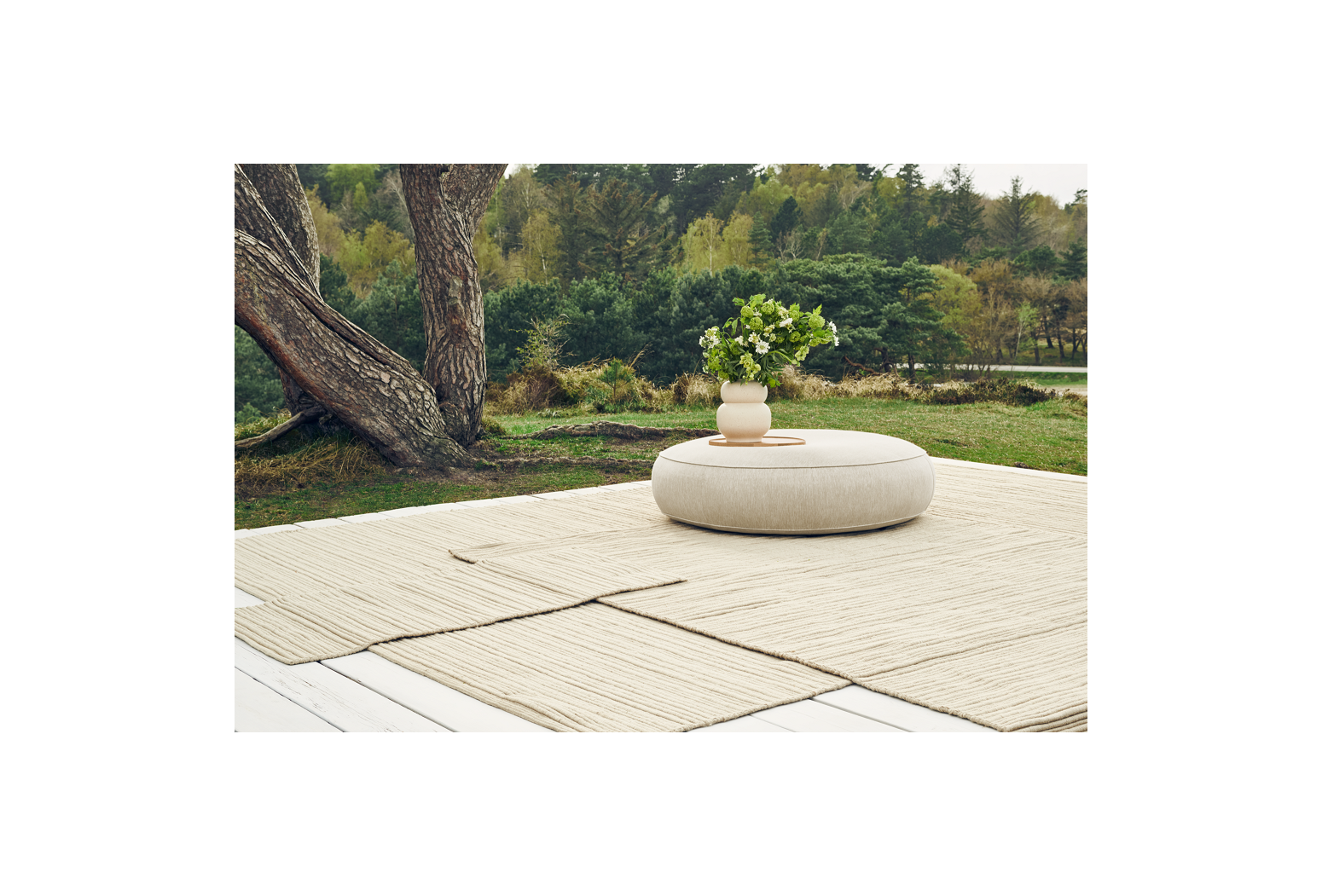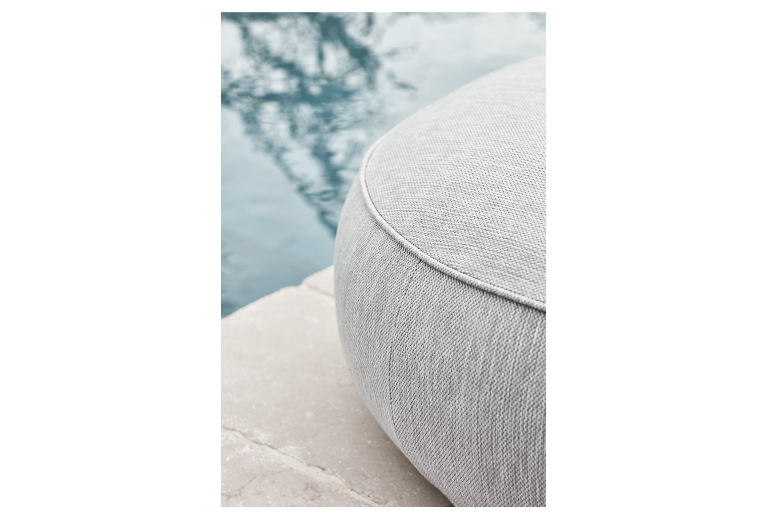 Calm is a series of poufs useable for the outdoors, but suitable for indoors too. The beautiful traces resembling sand or waves, create a quiet sanctuary while adding an intriguing and still soothing expression to your décor. Calm is filled with quickly drying filling allowing the design to dry up within a few hours, making the pouf a perfect addition to any outdoor – or indoor – space.