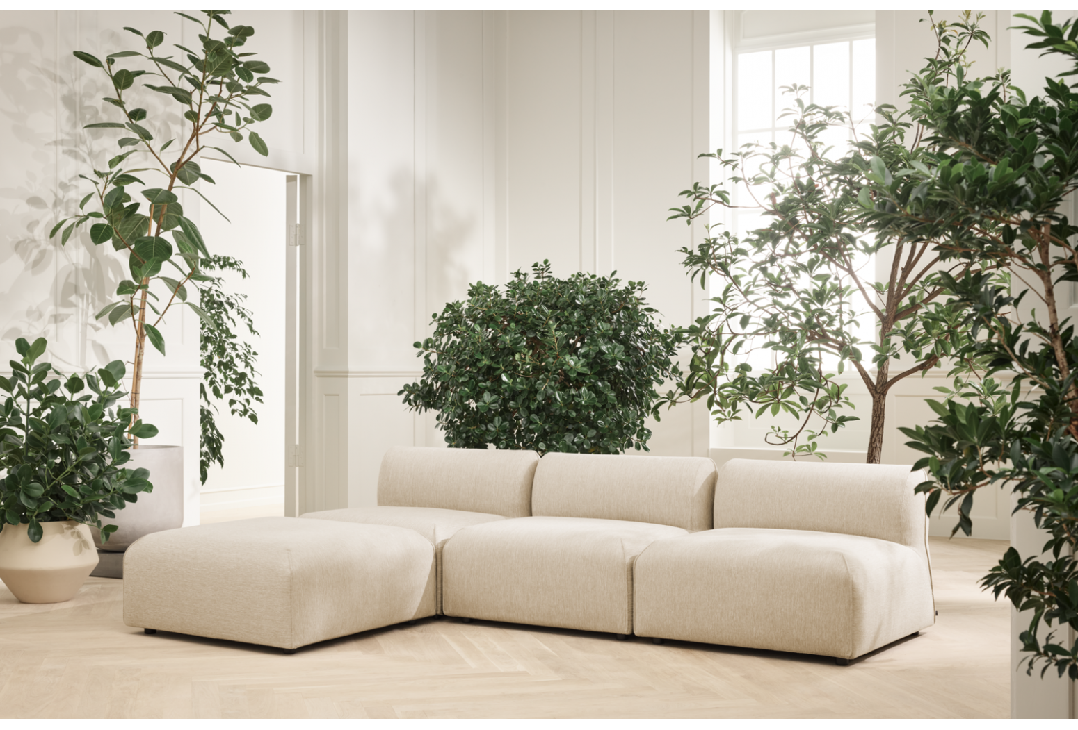 Elegant lounge chair and poufs that can be connected into customised sofa arrangements