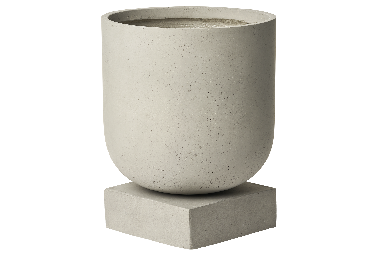Podium is designed by Sanna Völker and is a fusion of form and traditions. The fibre concrete gives Podium its weight, making these statement pots a simple and grandiose home for your green plants. A drainage hole at the base ensures that your plants thrive, but also makes the pot optimal for outdoor use.
