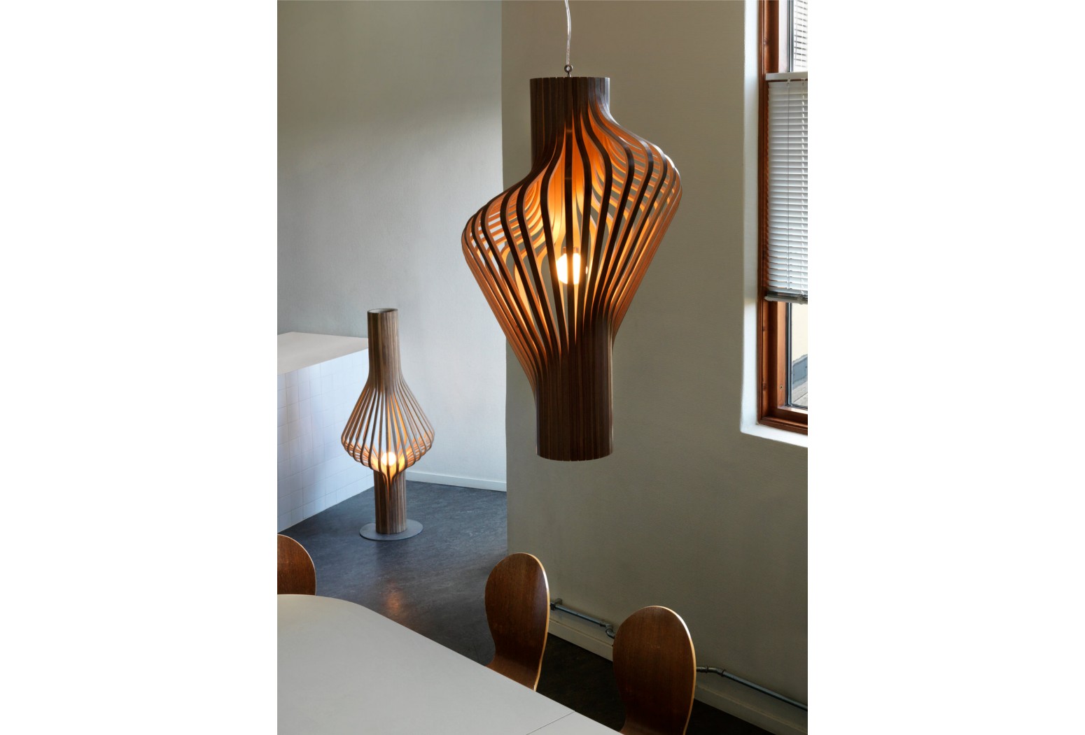 Read moreDiva’s distinctive, spiralling shade creates a sculptural shape that can be appreciated from several vantage points. Made from 32 strips of laminated plywood, the lamp showcases the sophisticated techniques required to craft such an expressive shape. The pendant lamp adds a striking feature to the interior while softly diffusing light over the room. Recently re-designed in a sleeker style, the floor lamp balances the shade on a shining metal disc that sits flush with the surface.