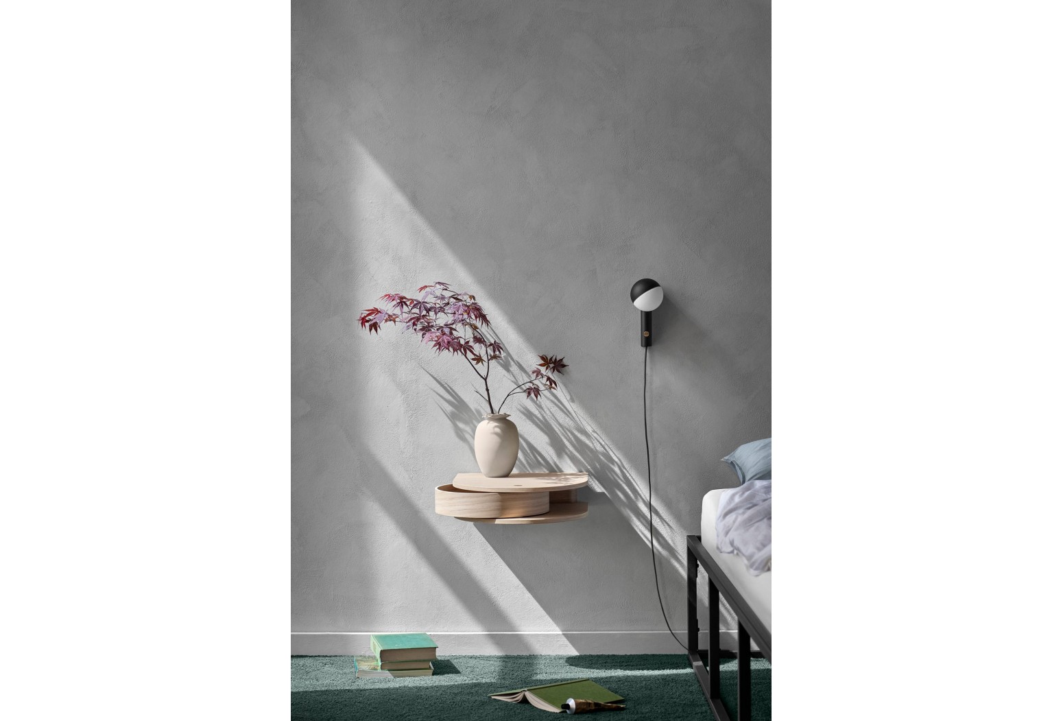 Effortlessly transforming from a wall lamp into a table lamp thanks to the magnetic metal plate included, the Balancer Mini comes in a matt black, steel, or red finish.